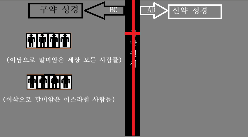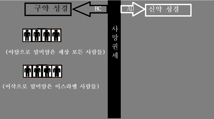 이 사람들이 앗수르, 바벨론 , 그리스도, 로마, 마케도니아 , 페르시아, 이집트, 진나라(중국), 고조선(한국) 나라 등을 이루고 있었고 아브라함 때에 하나님의 언약으로 태어난 이삭으로 말미암은 이스라엘 사람들이 태어나 있었다. 주목! 구약 성경에 기록된 이 세상 모든 사람들은 죄로 인하여 멸망하는 죄인들로서 사망 권세 아래 놓여 있었고 갇힌 상태이다. 이는 지금도 그러한 상태이다.
