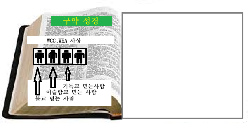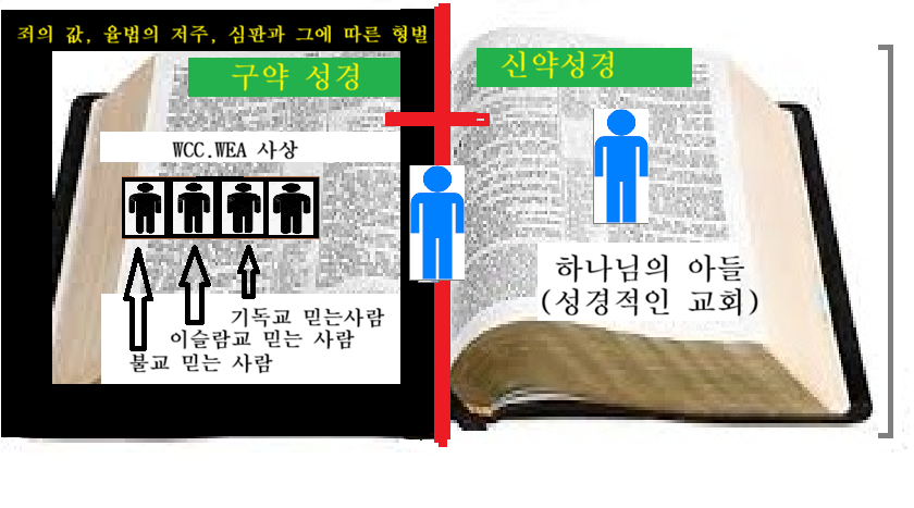 한국교회 대부분이 속해 있거나 영향을 받고 있는 세계교회연합단체라는 WCC.WEA는 하나님께서 창조하신 이 세상에 속해 있고 이 세상 창조시에 하나님으로 부터 지으심을 받은 아담으로 말미암은 사람이고 이 사람들이 기독교라는 종교를 믿는 사람들이다..