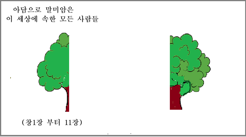 창1장 부터 11장까지는 이 세상 창조시에 하나님으로 부터 지으심을 받은 아담으로 말미암은 이 세상 모든 사람들의 출생의 기원과 내력을 담고 있고 창12장 부터 구약 성경 전부 끝까지는 이삭으로 말미암은 이스라엘의 출생의 기원과 내력을 담고 있다.