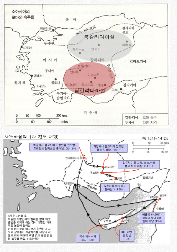 바울은 자신의 제1차(행13:14 14:24) 및 제2차(16:1-5) 전도 여행 때
