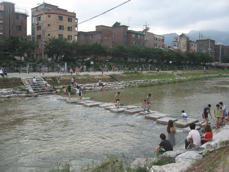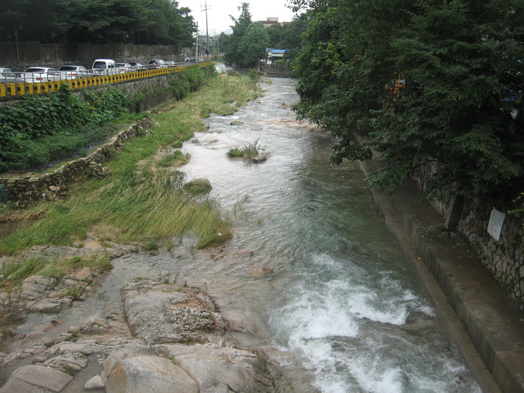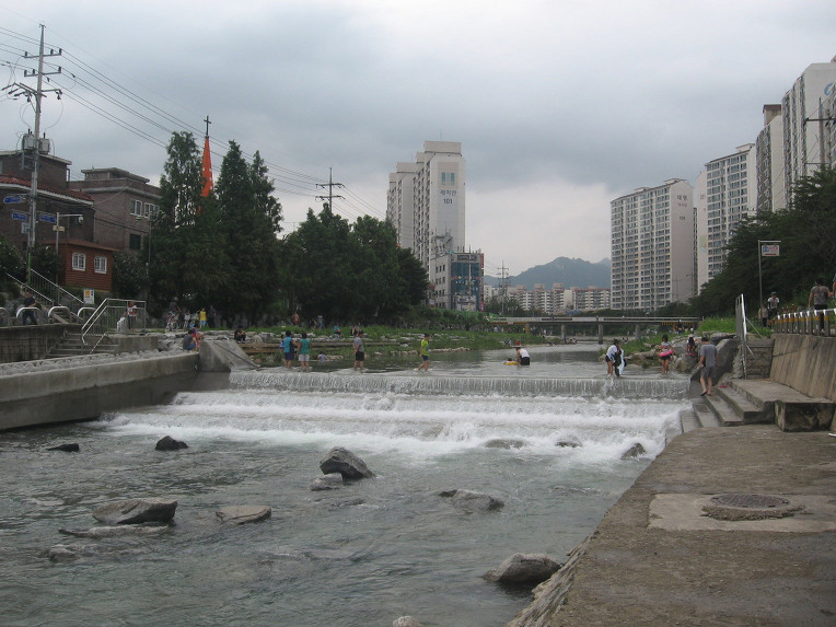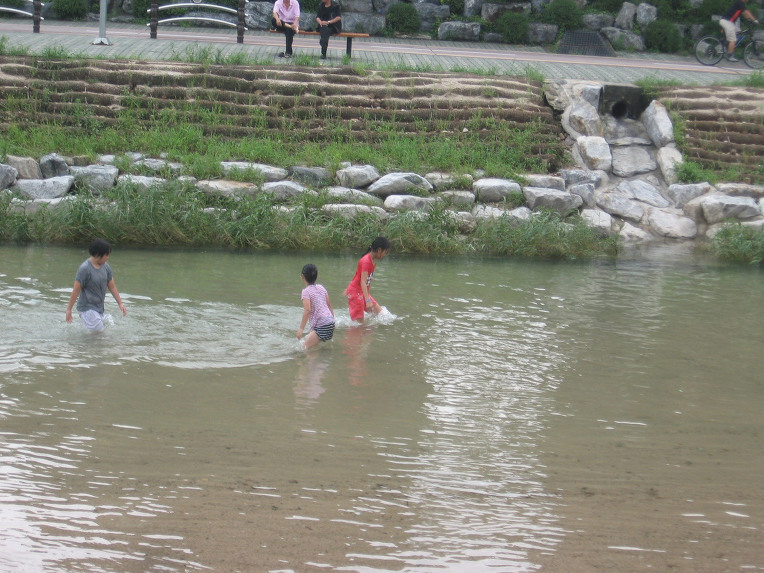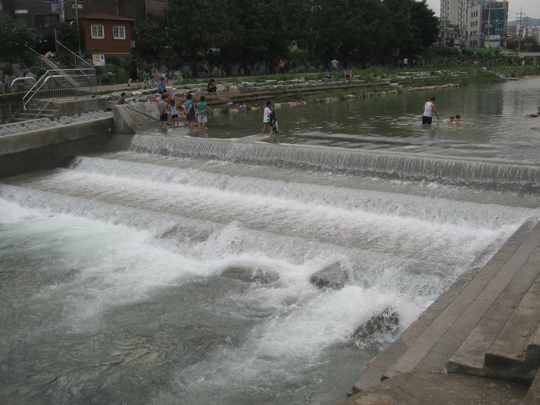 6. 비가 온 후라서 우이천에 물이 많아 곳곳이 자연 수영장