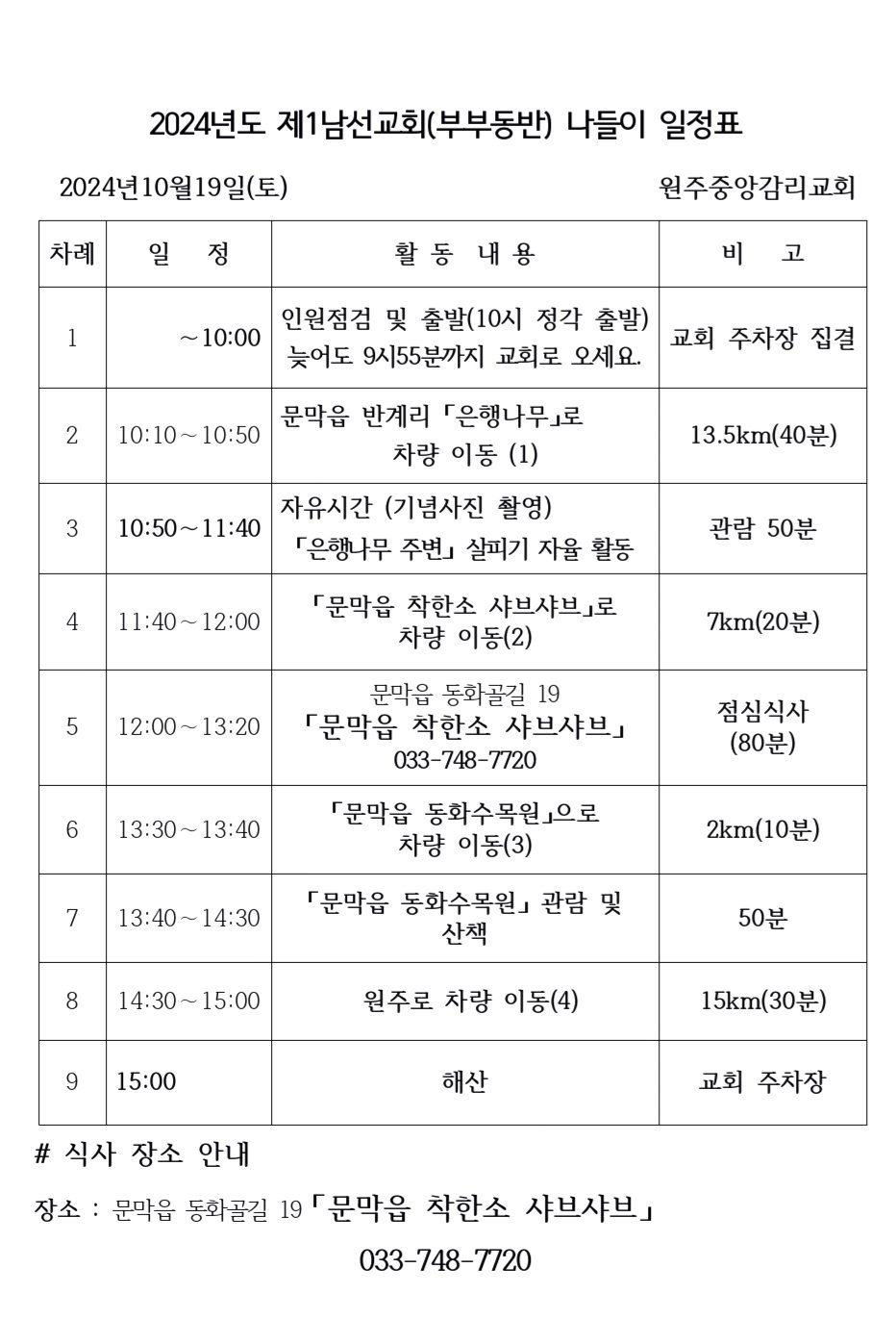 2024년10월19일 (토) 10시-오후 3시 제1남선교회 회원부부 나들이