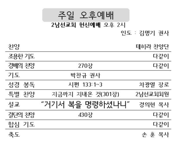 2024년 제2남선교회 헌신예배 작성자김형배|작성시간24.03.17|조회수31 목록 댓글 0 글자크기 작게가 글자크기 크게가 제2남선교회 헌신예배 (2024년 3월17일 주일 오후 2시) 다음검색 현재 게시글 추가 기능 열기 북마크 공유하기 신고 센터로 신고 댓글 댓글 0 댓글쓰기 댓글 리스트