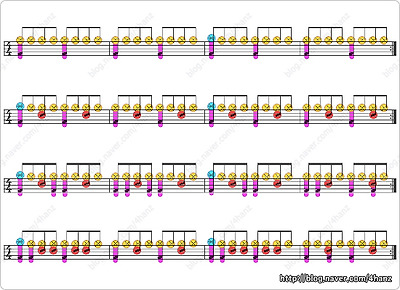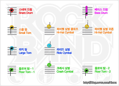 락밴드 드럼 노트를 실제 악보에 적용해보자.
