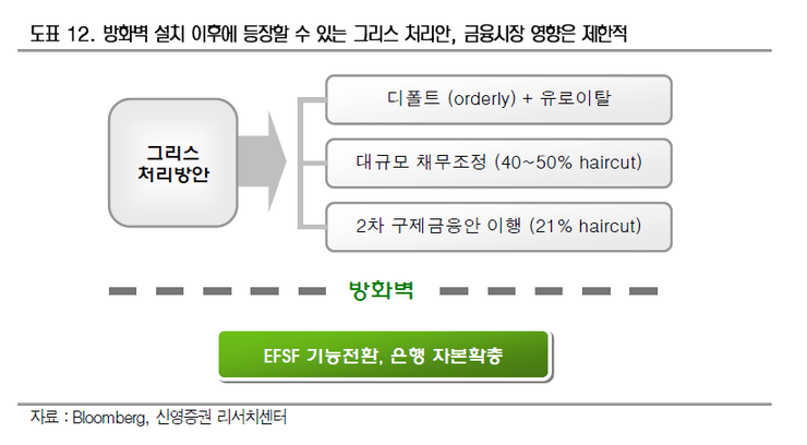 방화벽을 구축한 상태에서는 그리스 디폴트 처리든, 2 차 구제금융안 체제로의 이행이든 금융시장 영향은 제한된다.