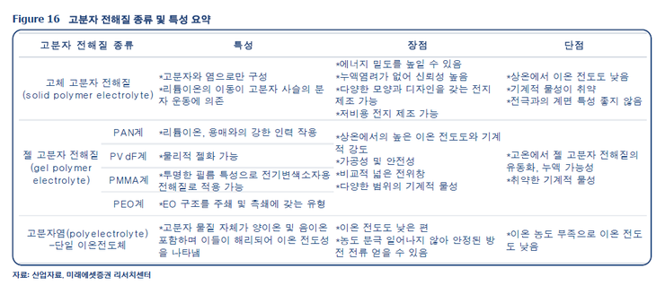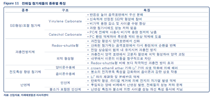 하지만 전해질 업체에 대해서도 관련된 특성을 가진 조합을 확보하기 위한 적극적인 조언이 필요하기 때문에 전해질 업체의 중요성이 향후 더 강조될 수 밖에 없을 것이다.
