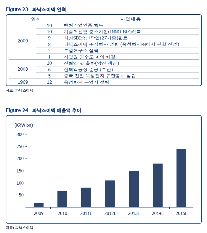 세계 전해질 시장 점유율을 20% 이상으로 끌어올리며 일본 미쓰비시에 이은 2 위를 달리고 있는 파낙스이텍은 삼성 SDI 와 국내 리튬 2 차전지 생산기업은 물론 중국 등 해외 2 차전지 생산기업으로 공급이 확대되고 있다.
