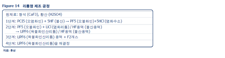대표적인 리튬염인 LiPF6 는 불산(HF)을 핵심적으로 활용해서 만들어 진다.