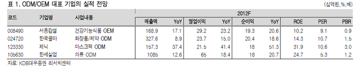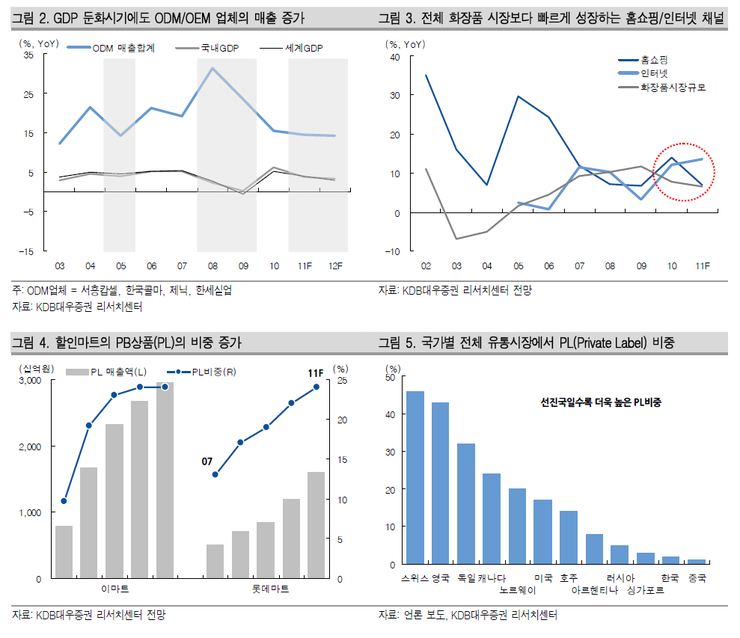 또한 국내뿐 아니라 중국의 화장품 소비 증가로 국내 완성품 업체의 매출 증가 속도가 빨라지면서 ODM/OEM 업체들의 수혜가 이어지고 있다.