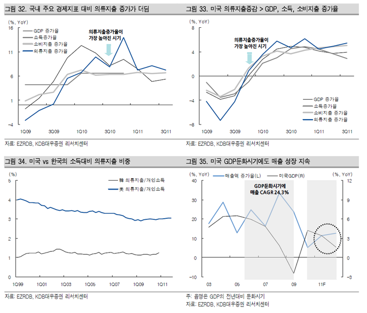 ① 미국 GDP 둔화기에도 매출 성장이 이어진다.