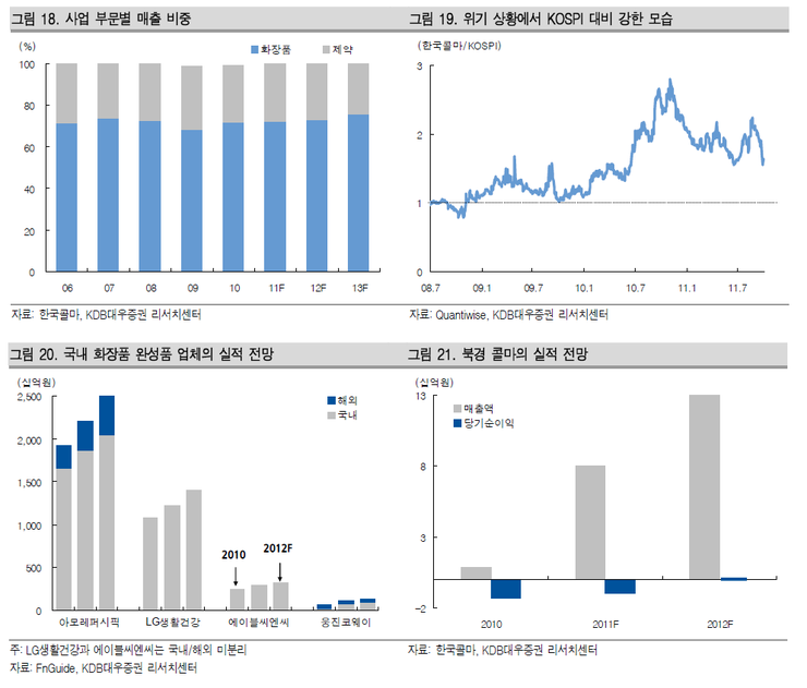 2011년 북경 콜마는 매출액 80억원이 예상되며 2012년에는 130억원으로 BEP 수준에 도달할 것으로 기대한다.