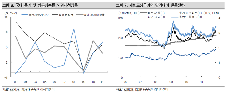국내 시장의 경우 경제성장률보다 생산자물가와 임금상승률이 훨씬 높게 나타나고 있다.