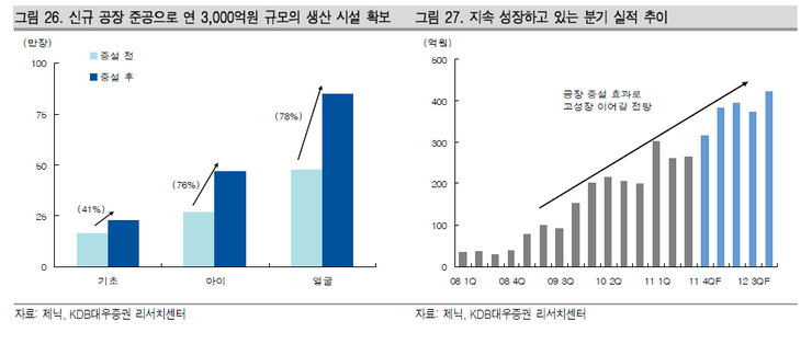 시장의 수요를 따라가지 못하는 제품 공급 문제도 신공장 완공에 따라 2012년 고성장을 이어갈 것으로 전망된다.