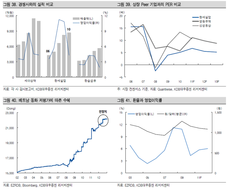 또한 면화 등 원부자재의 급격한 가격변동에 대해서 회의적으로 전망하기 때문에 안정적인 수익성 개선이 이어질 전망이다.