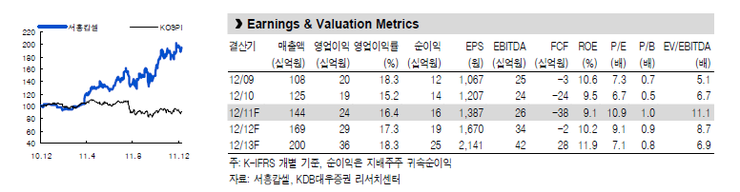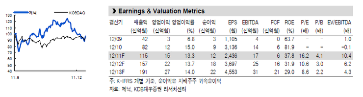 2012년 매출과 영업이익 전망은 각각 1,573억원(YoY +37.3%)과 215억원(YoY +41.2%)의 고속 성장을 기대하고 있다.