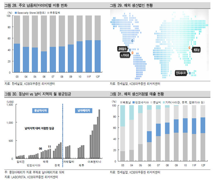 특히 동남아시아와 중남미 지역의 임금차이가 크기 때문에 상대적으로 임금이 저렴한 베트남과 인도네시아 법인에 대한 생산량을 늘리고 있다.