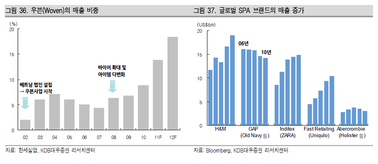② 우븐(Woven) 비즈니스 비중 확대로 수익성 개선을, SPA 산업 진출로 외형 확대를 기대한다.
