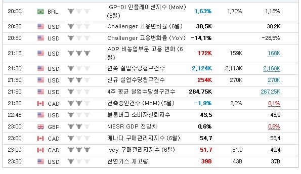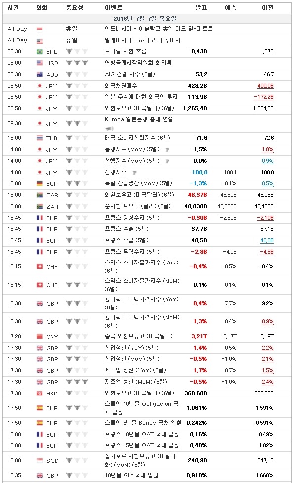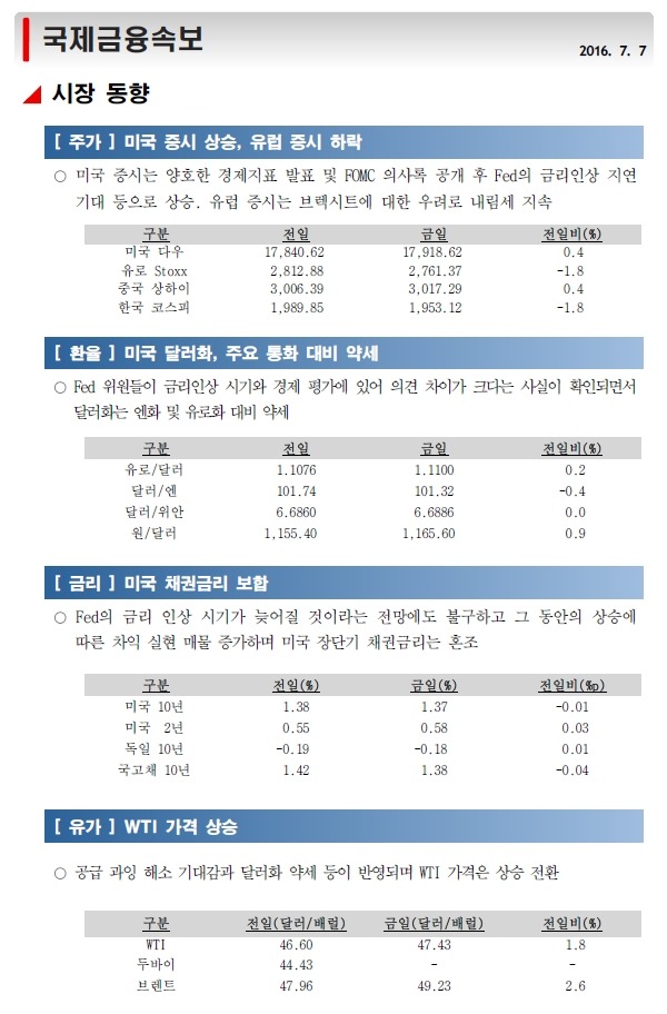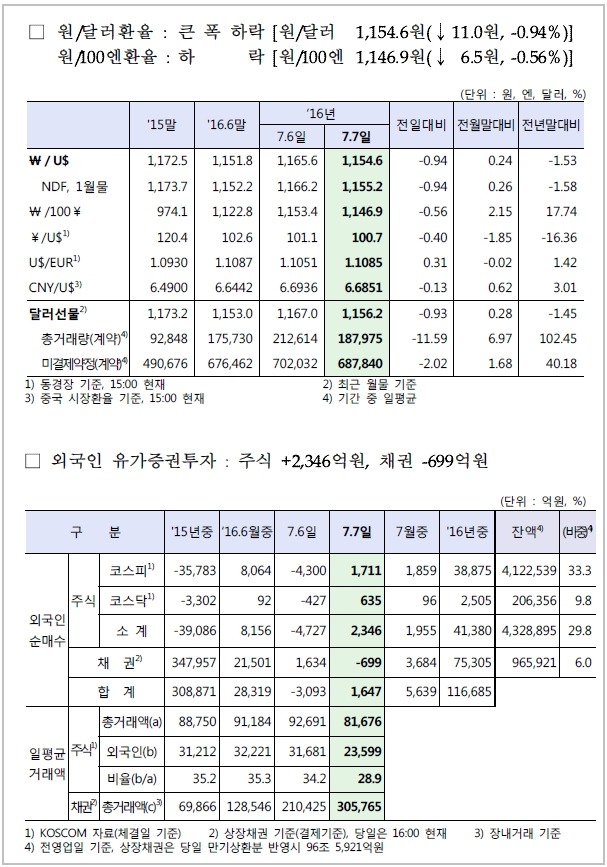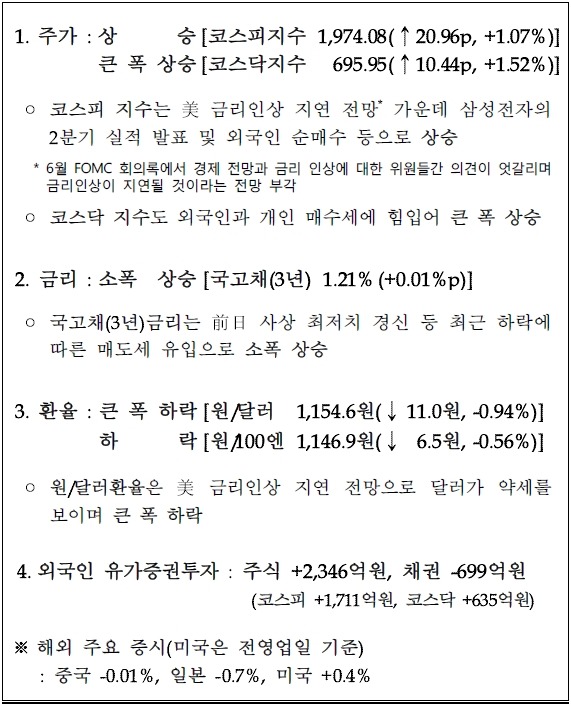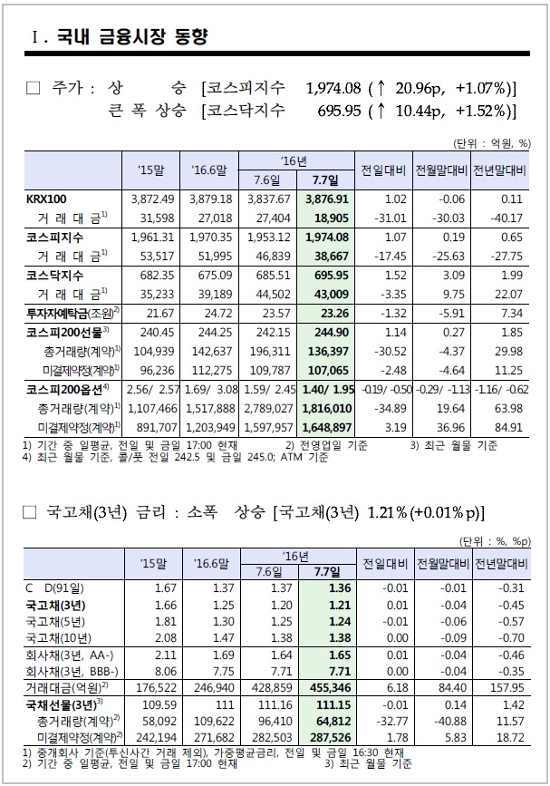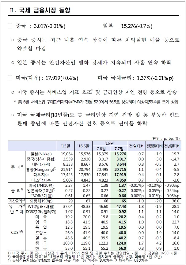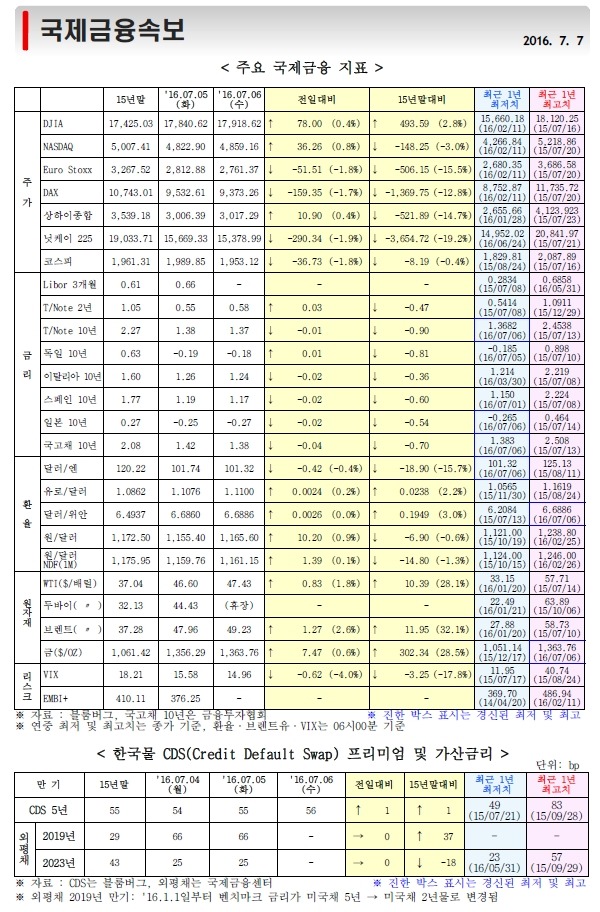 7월 7일, 주요경제지표 및 금융모니터링