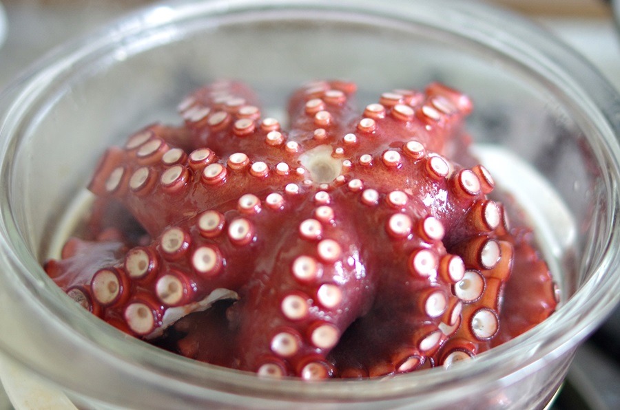 사이즈가 큰 문어는 이렇게 삶아서 바로 다 먹을수 없죠~