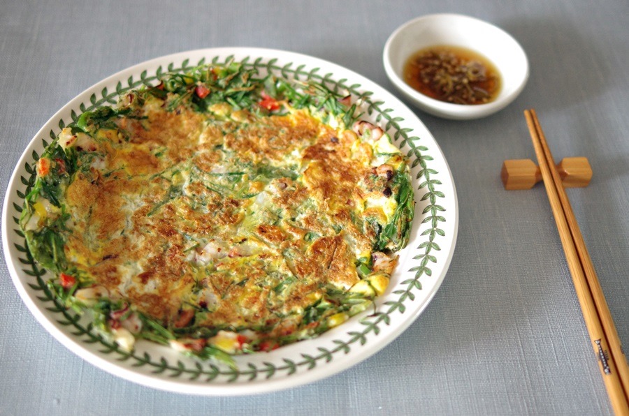 이렇게 맛있게 먹고도 문어가 남았다면 더 송송송 썰어서 전을 부칩니다~