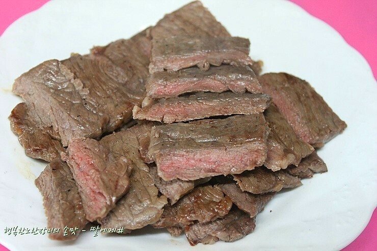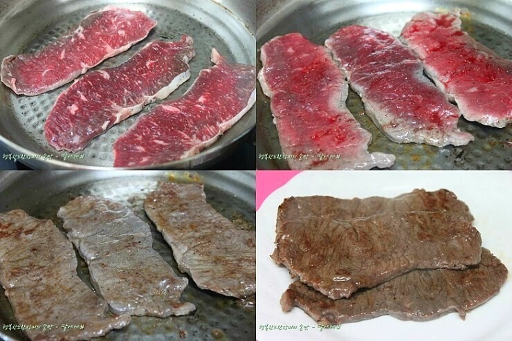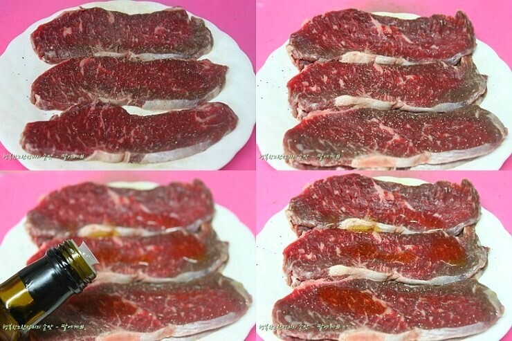 고기는 팬을 달구어 고기를 넣으면 치지직 할 정도로~