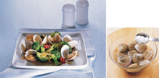 조개류는 제대로 해감하지 않으면 먹을 때 모래가 질금질금 씹힌다. 소금물에 담가 어둡고 서늘한 곳에 두어 해감한 후 비벼 씻어 조개의 불순물을 제거하고 조리한다.