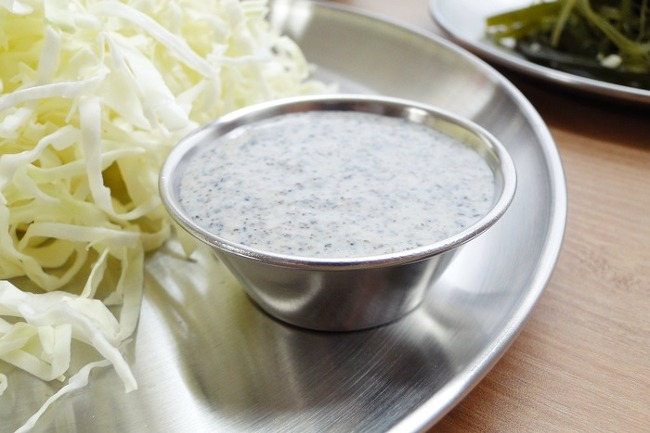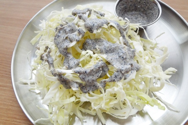 들깨 2스푼, 흑임자 반스푼, 식초 1스푼, 설탕 1스푼, 마요네즈 1스푼, 양파 1/8개, 소금 조금, 우유 3스푼(요플레 대체가능)