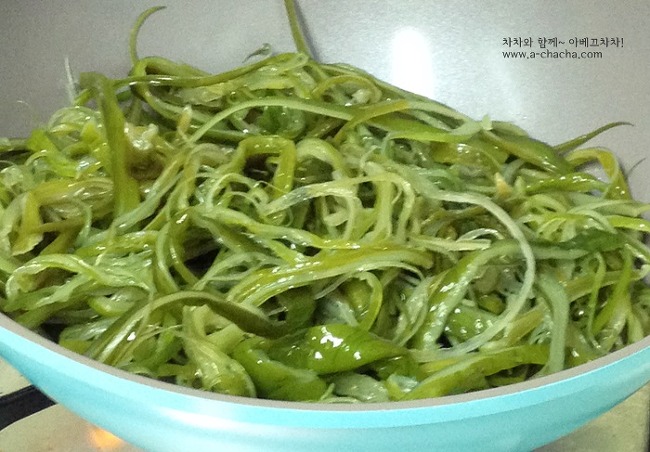 너무 뭉치거나 길면 가위로 숭덩숭덩 잘라준 후 볶아주면