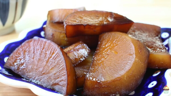 무를 큼직하게 썰어 간장 양념에 조린 무 조림 한 가지만 있어도 밥 한 그릇을 뚝딱 할 수 있다. 냄비에 무와 다시마를 넣은 다음 무가 잠길 정도로 물을 부어 약한 불에서 끓여주는데, 이때 물이 끓어 오르면 다시마는 건져서 한입 크기로 잘라 둔다. 무가 반 정도 익으면 양념(설탕, 간장, 물엿, 다진 마늘, 통깨)을 넣어 국물이 자작해질 때까지 끓여주면 된다. 불을 끄기 전 미리 썰어둔 다시마를 넣어 뒤적여 준 후 접시에 담아 통깨를 뿌려주면 된다. 무만 넣고 만들어도 맛있지만, 버섯 등 다양한 재료를 함께 넣어 만들어도 좋다.