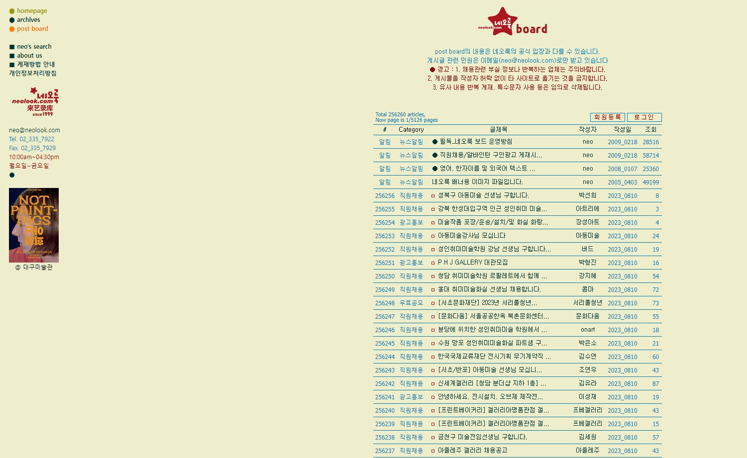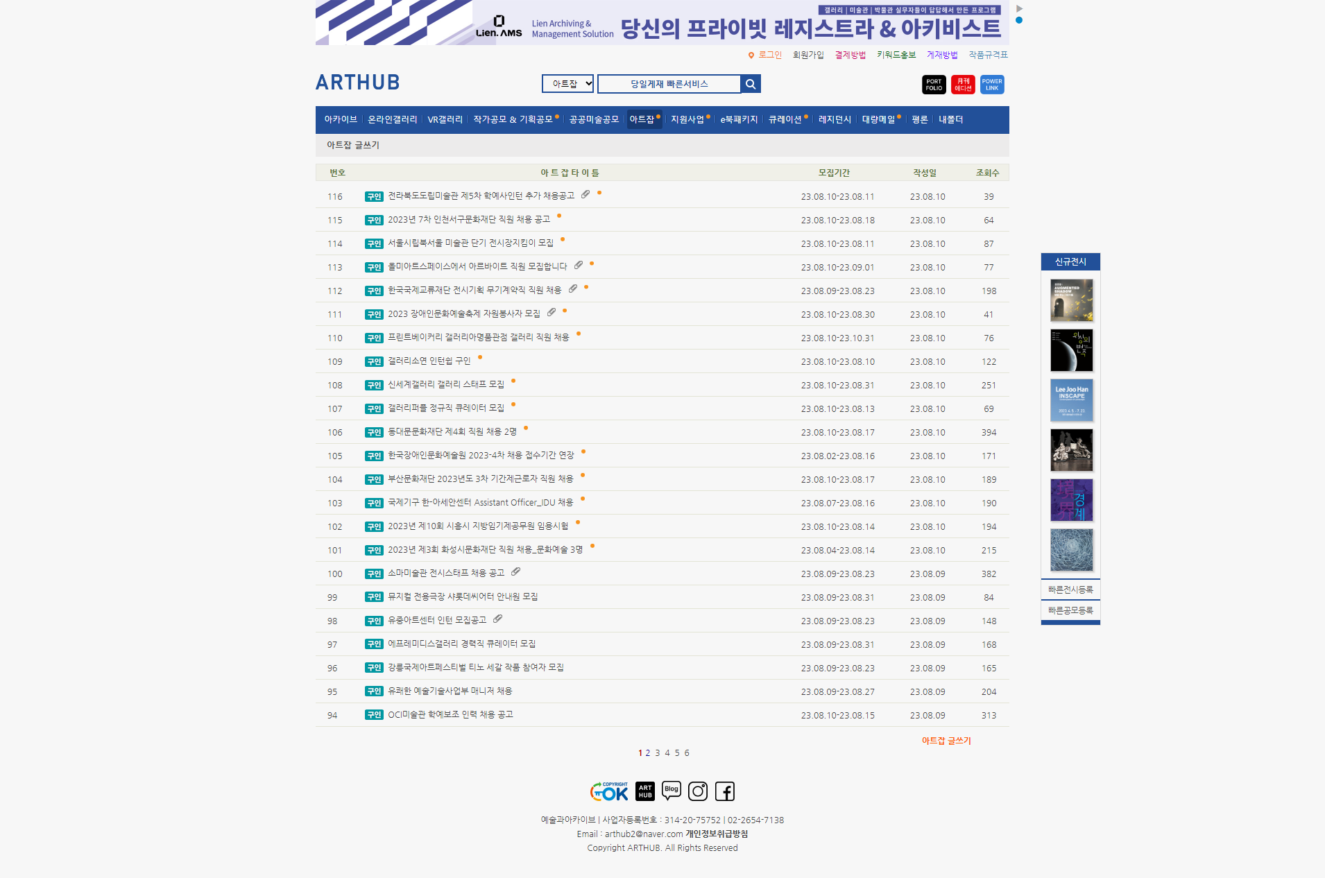 여러 전시기관들은 본인 홈페이지에만 올리는 경우도 있어서