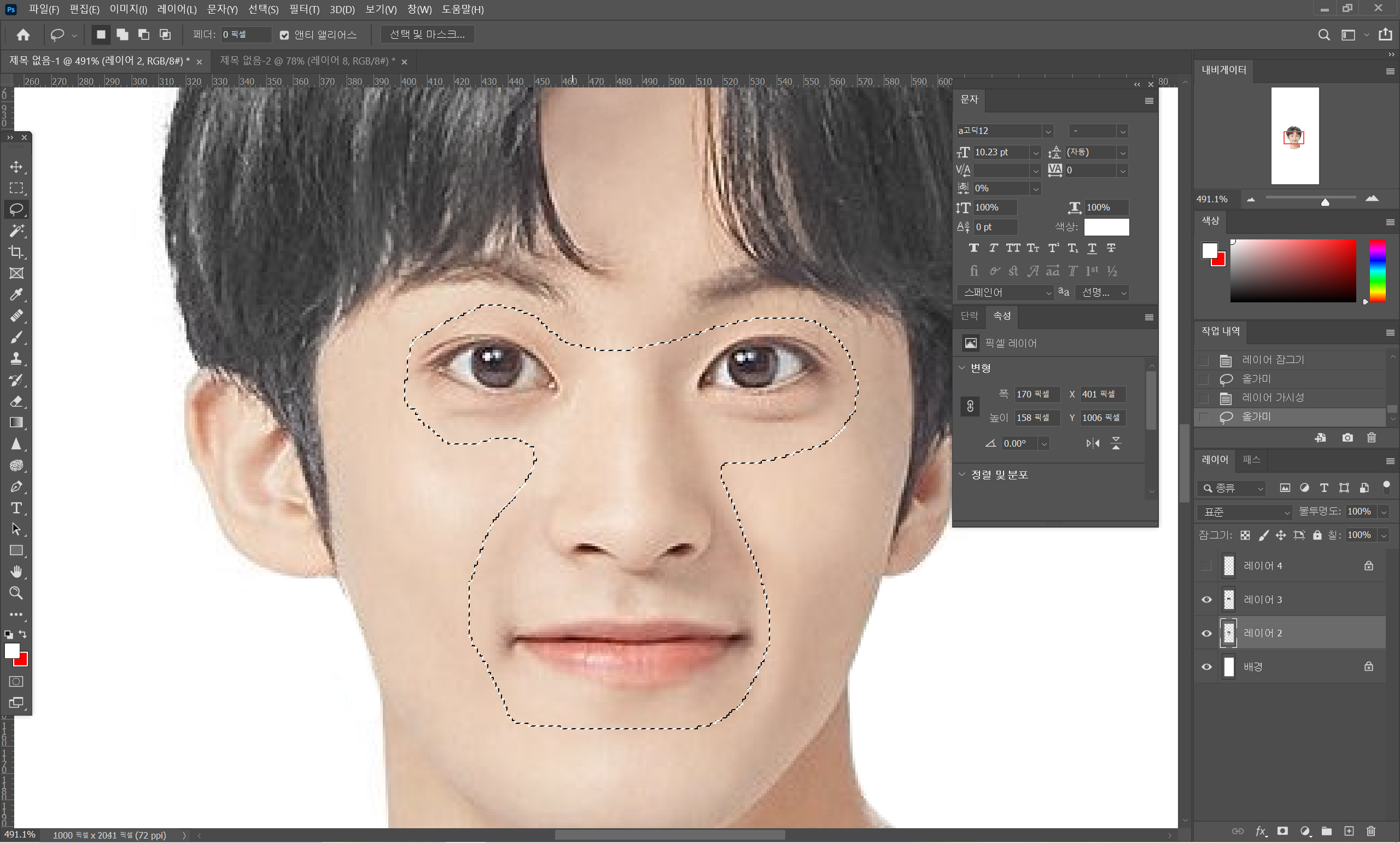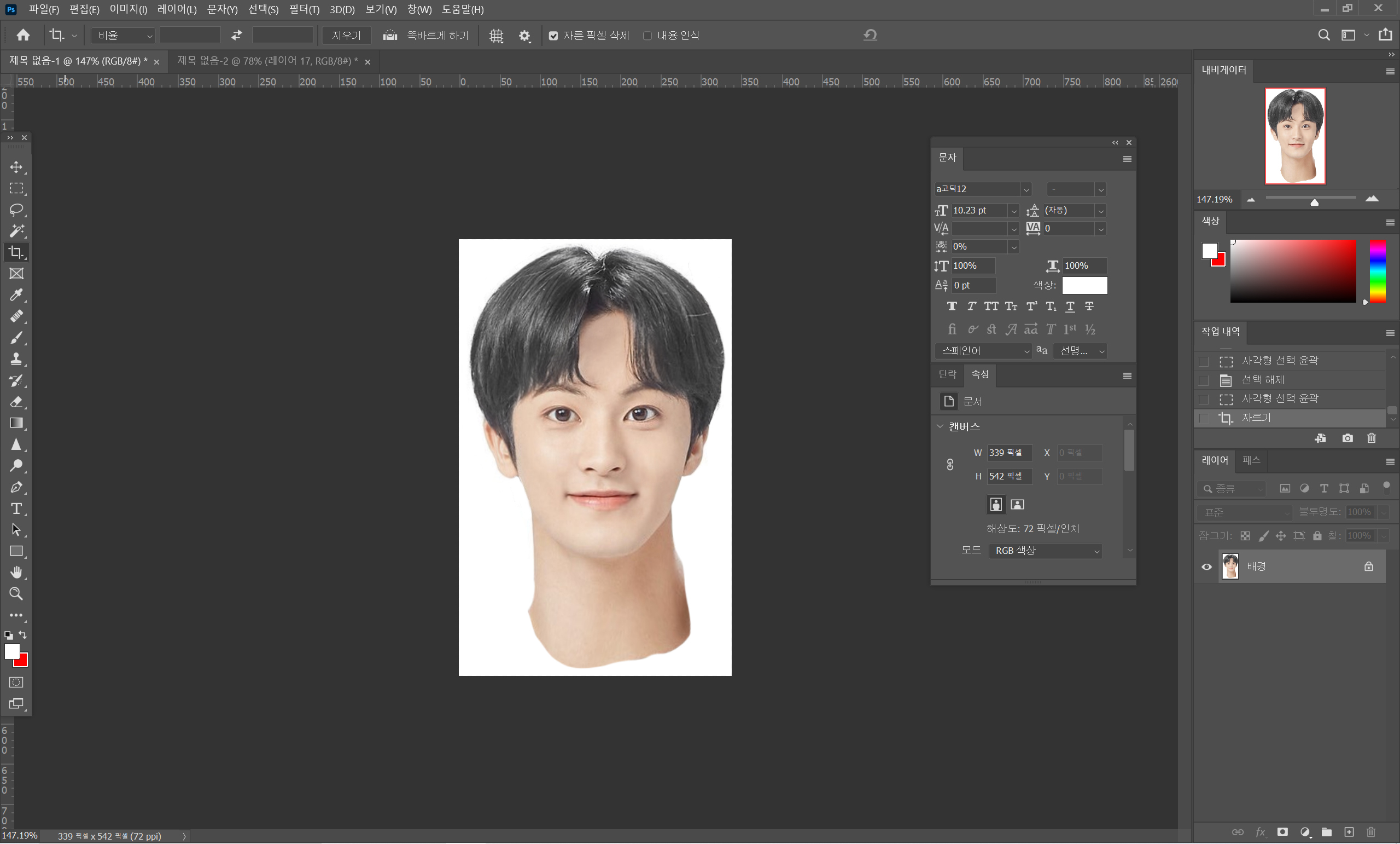 이렇게 전체적으로 만든거 하나 저장해주시고 이제 자기가 원하는 부위만큼 증사 4:3을 유지하며 잘라주세요~