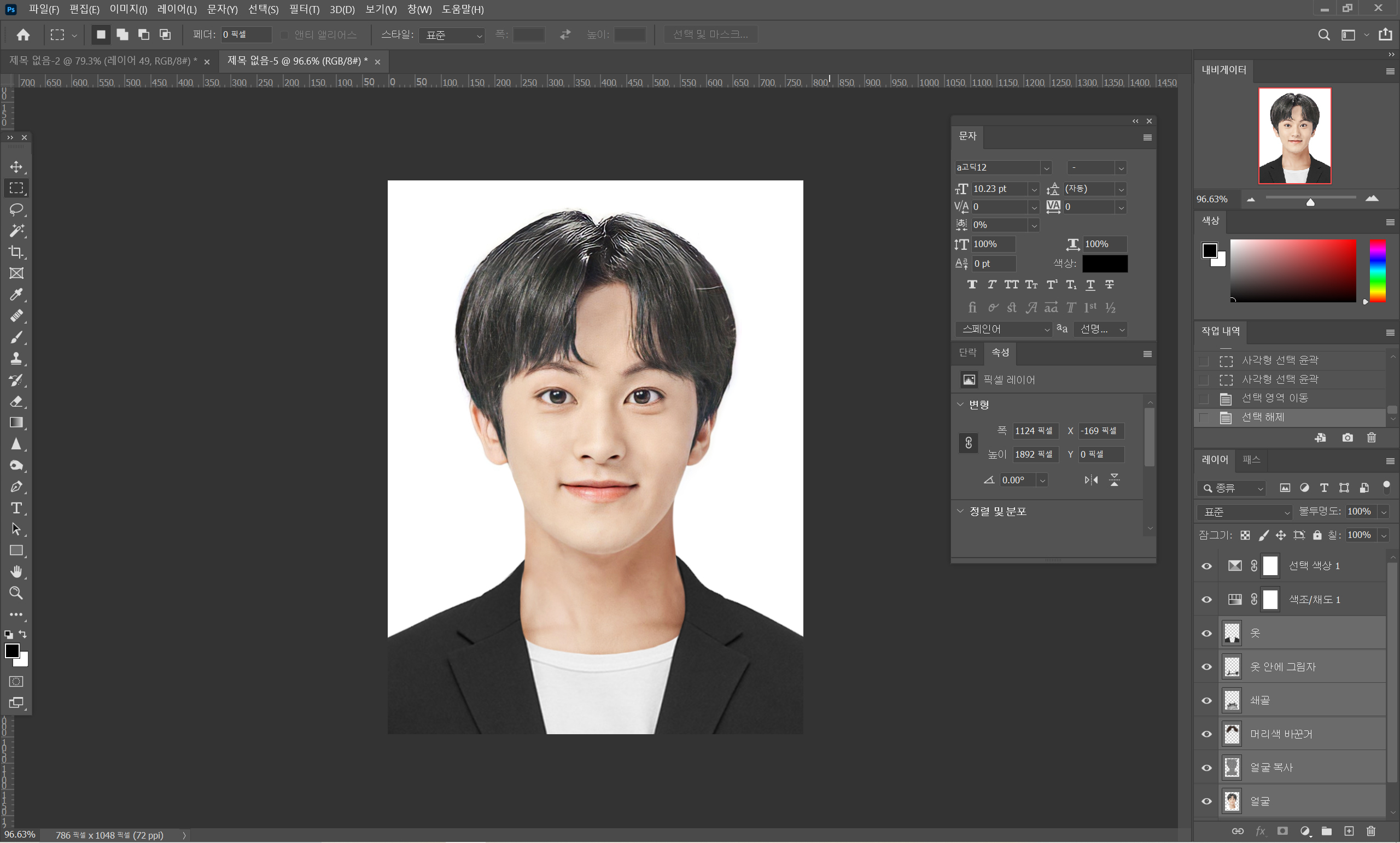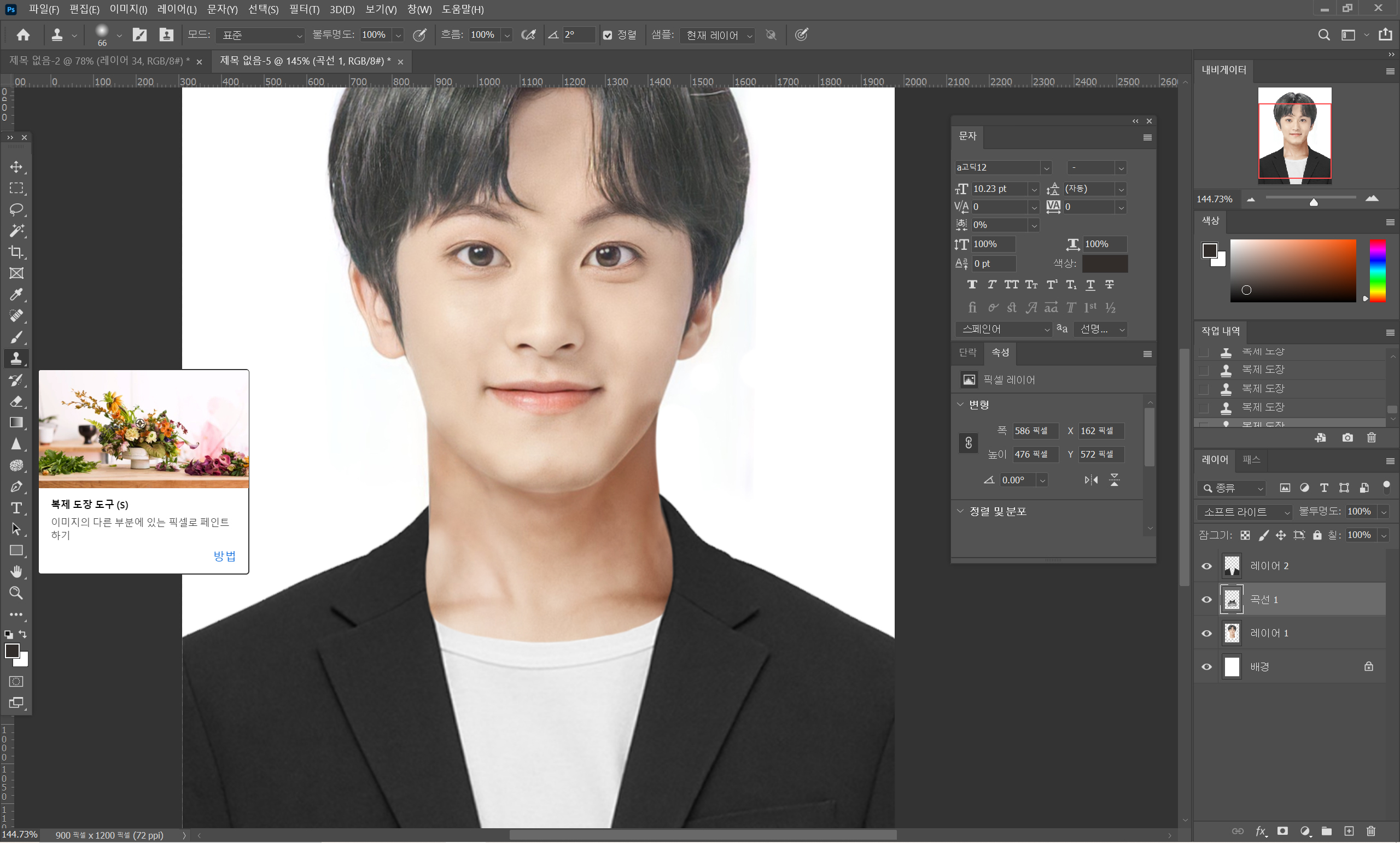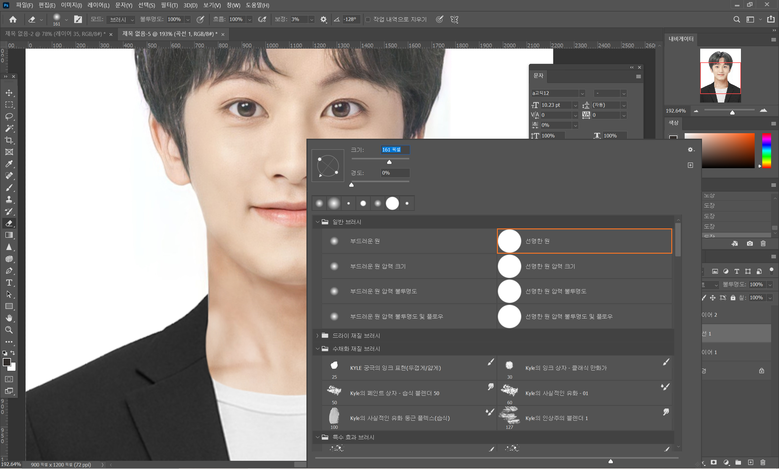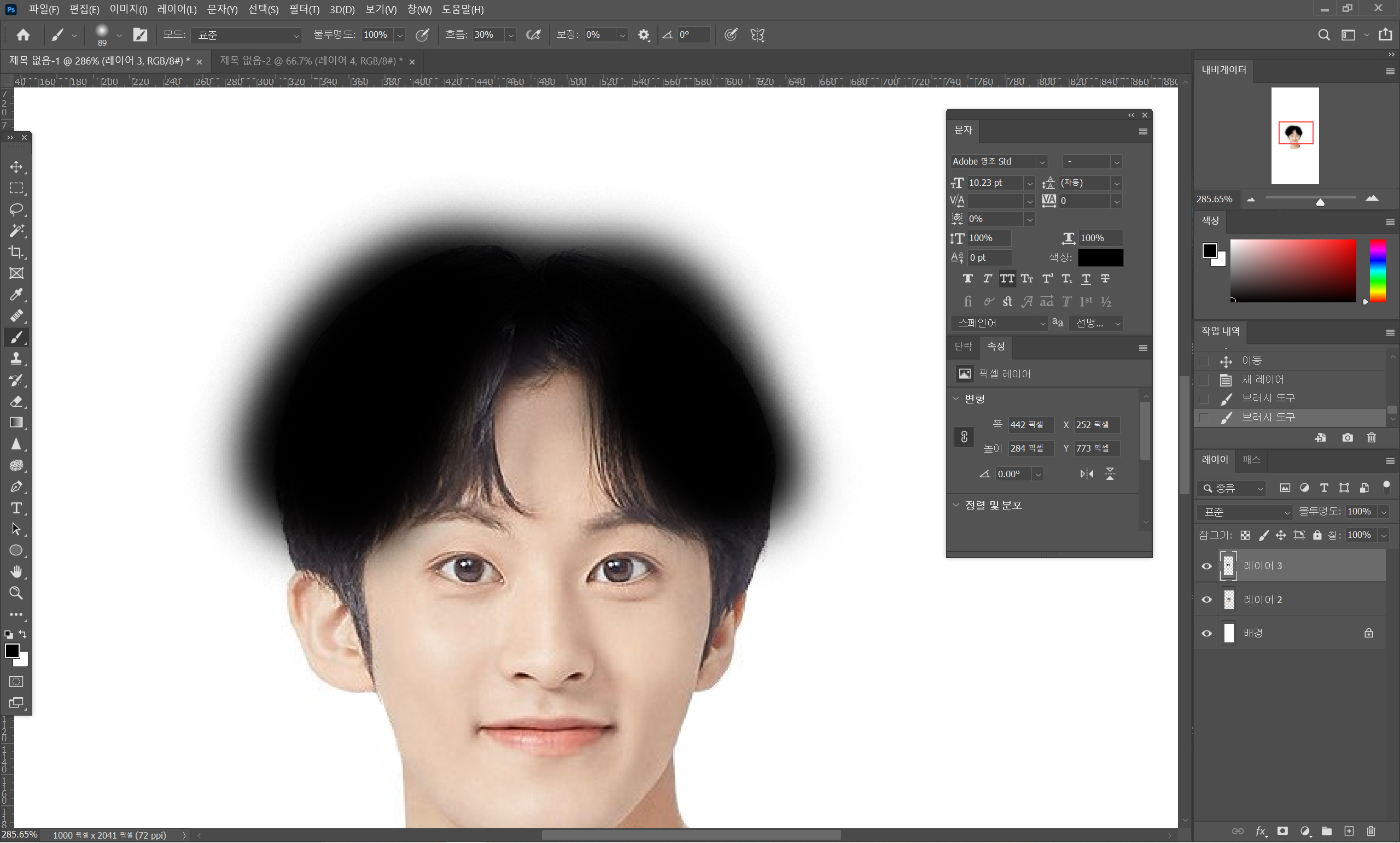 소프트 라이트를 (하이패스로 복제한 레이어를) 눌러주면 더 선명한 얼굴을 만들 수 있습니다~
