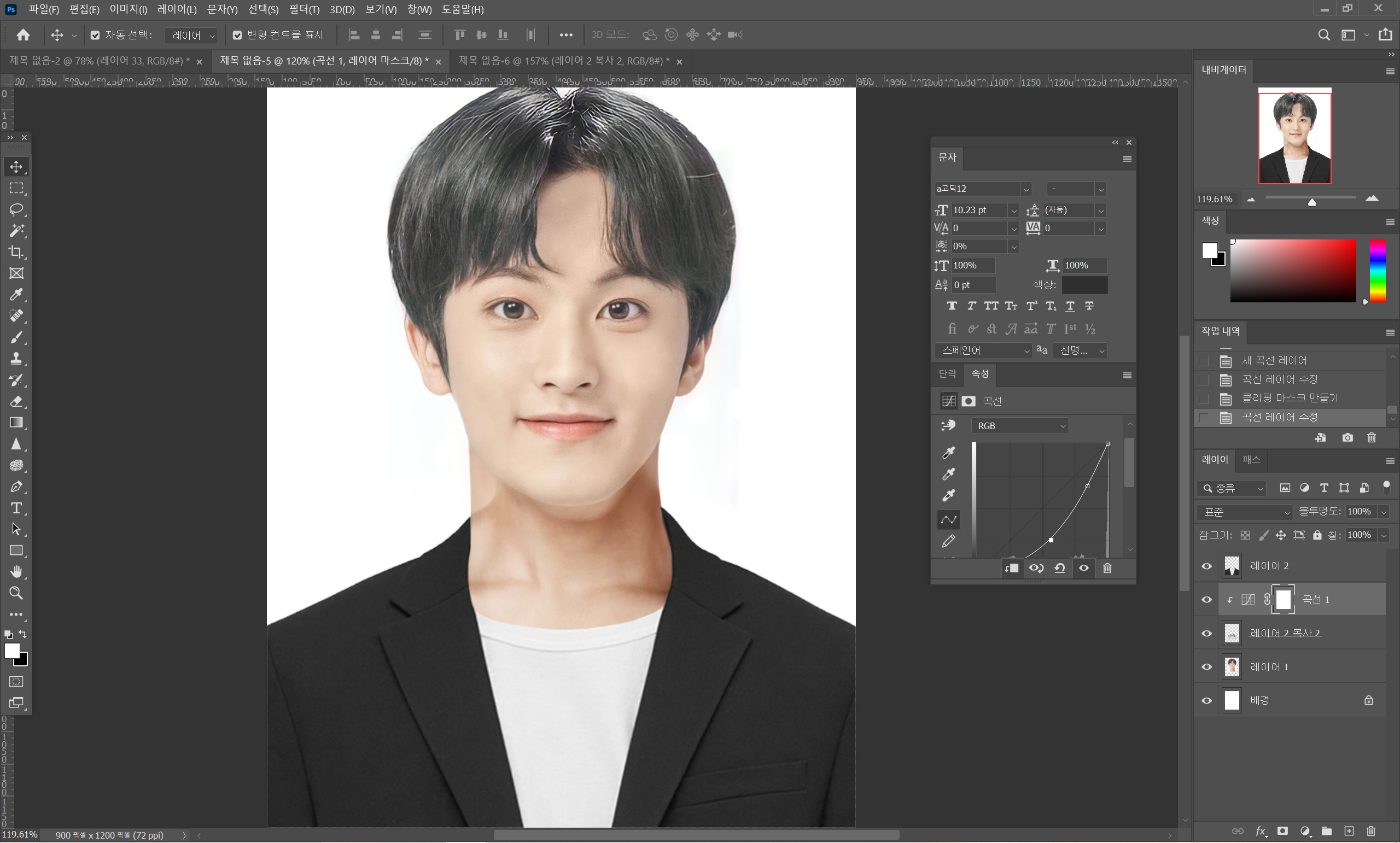 피부에 맞게 곡선이나 명도를 조절해주시구요!