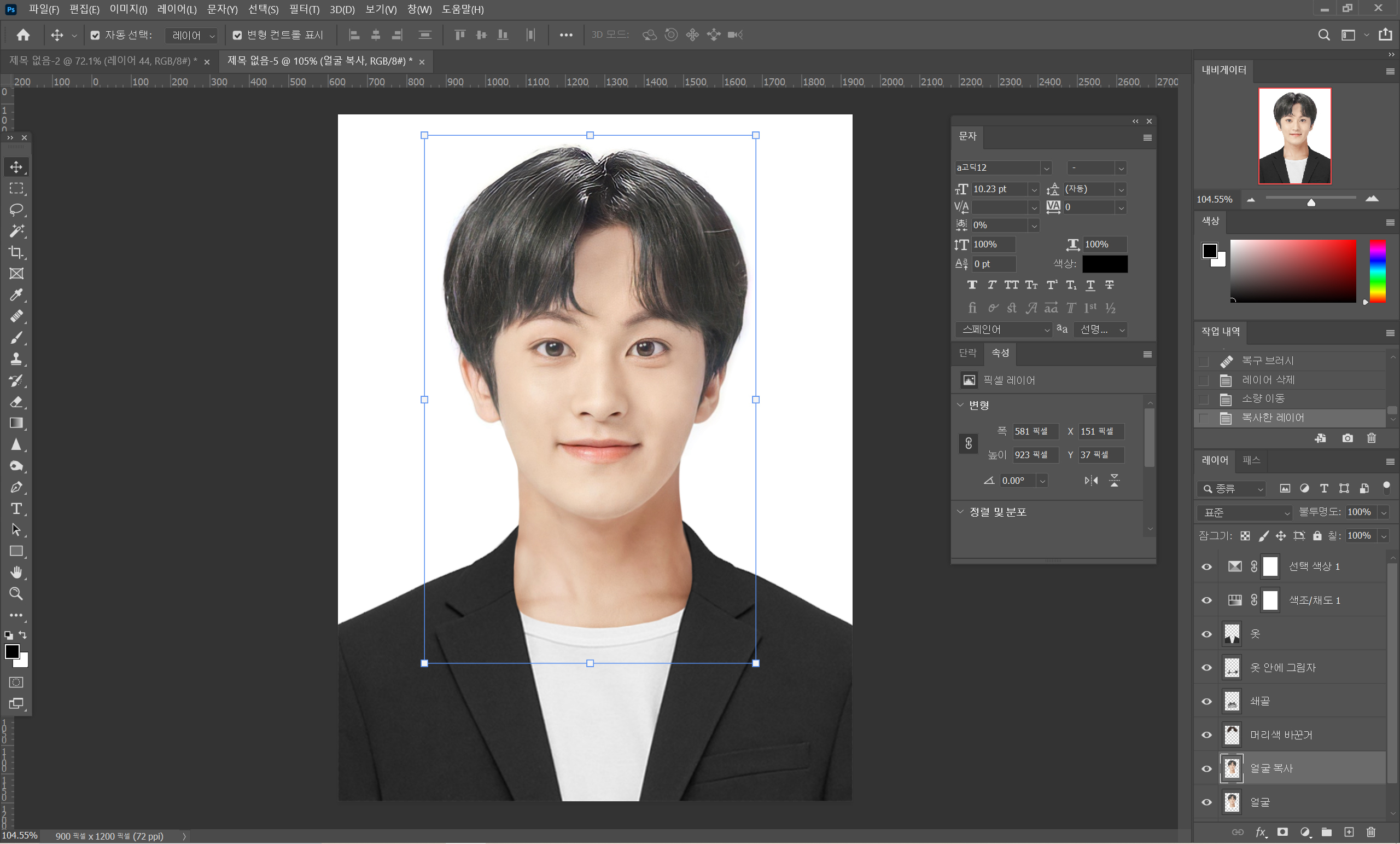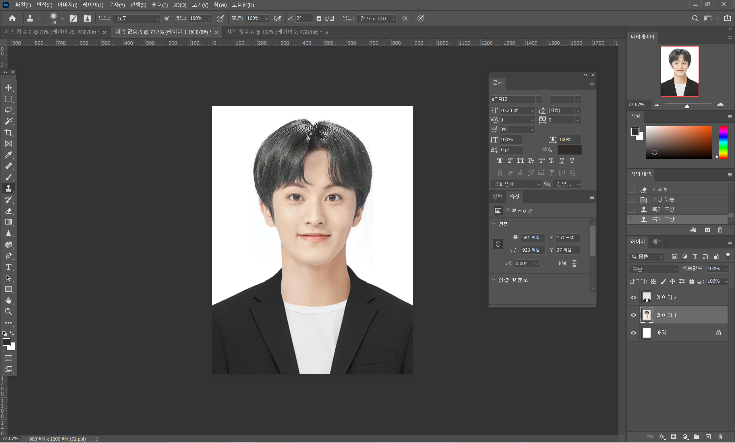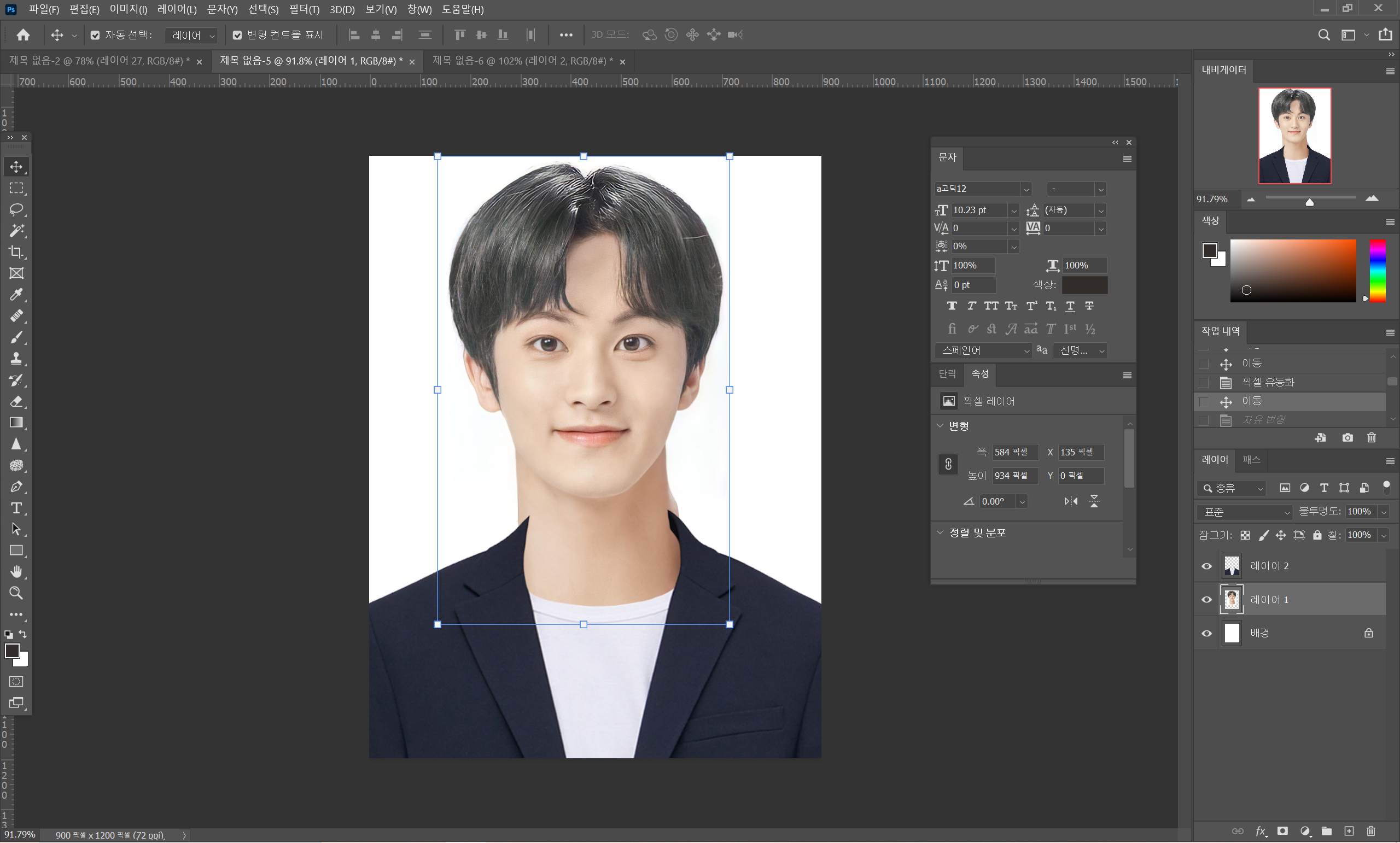 짜잔 그리고 4:3 증사 파일에 마크 얼굴을 끌어오고