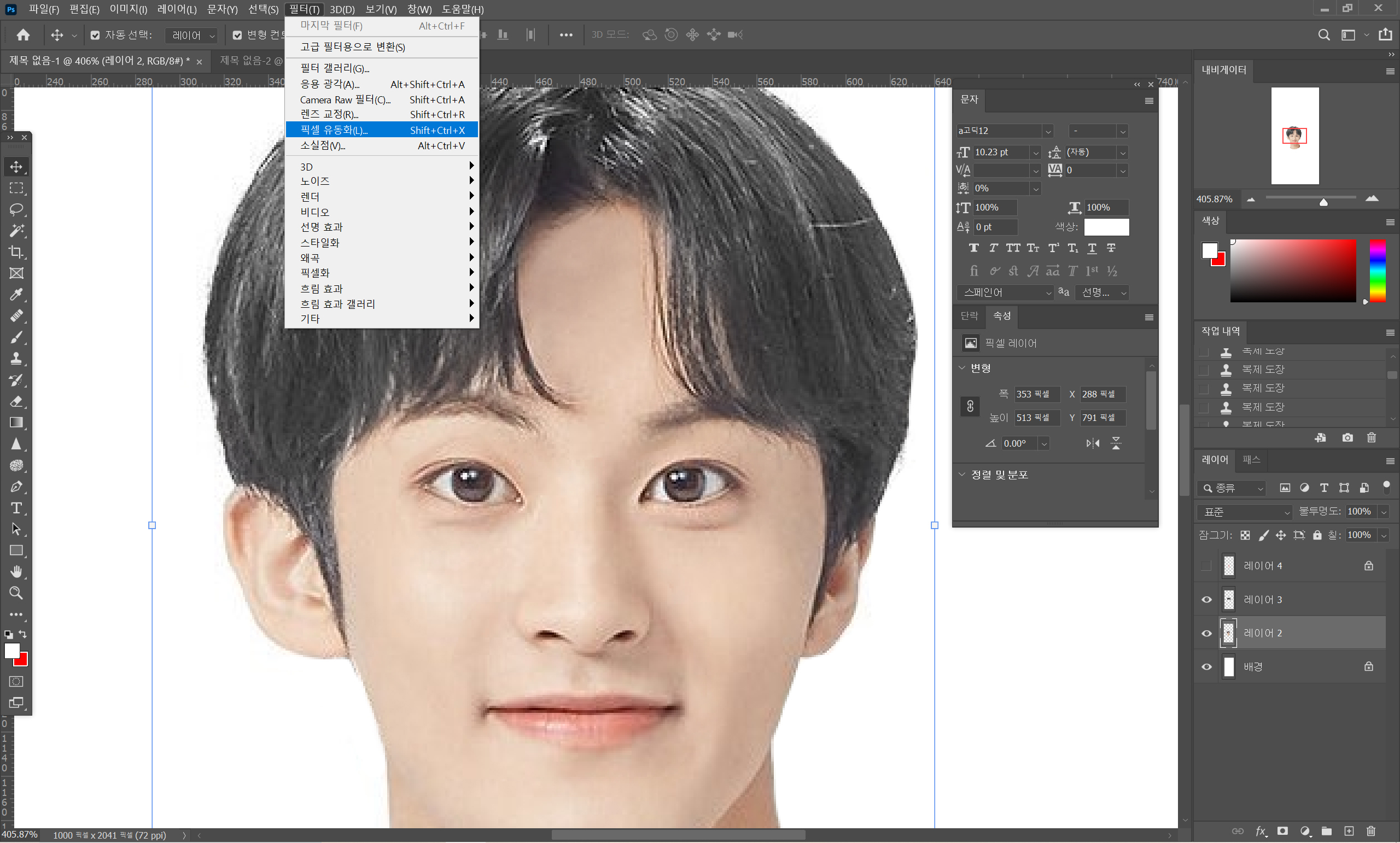 그리고 주변에 있는 걸 지워주세여 여기서 머리카락 한 올 한 올 안 지워도 됩니다 << 이거 중요