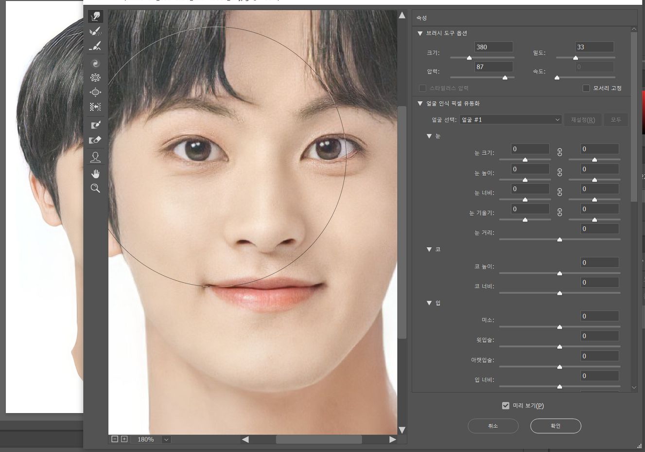 픽스아트 포샵이라고 생각하시면 되어요 자세한건 저기 손가락으로 늘려주고 (얼굴 윤곽을 다 잡아주거나, 아까 튀어나온 귀를 눌러주거나) 이목구비는 얼굴 인식 픽셀 유동화를 하나씩 눌러보면서 증사같은 은은한 미소를 잡아주어요... 이게 아주 큰 파트입니다..