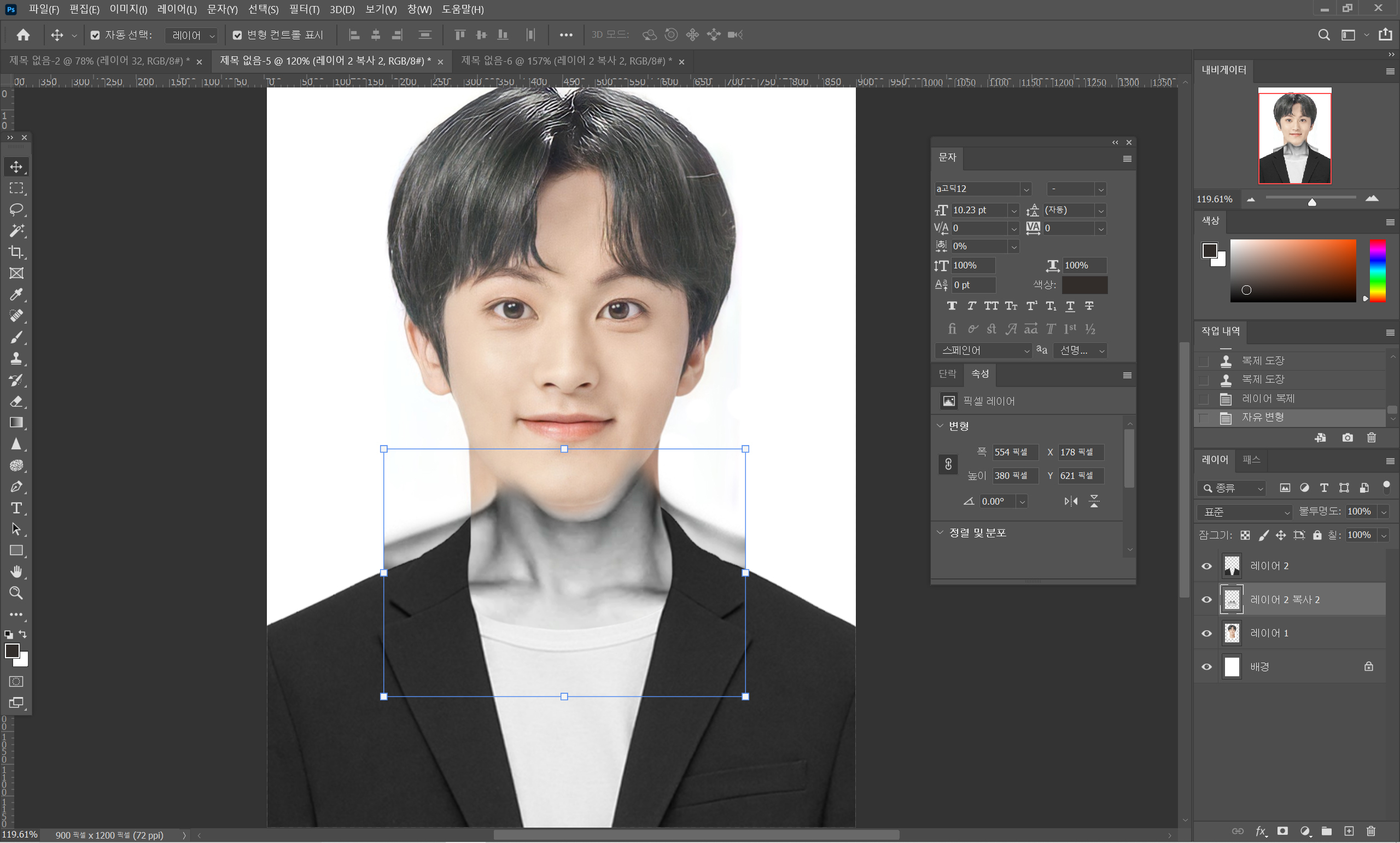 도장 파일로 레오씨 쇄골과 피부등을 복제해서 되도록 자연스럽게 늘려줍니다...