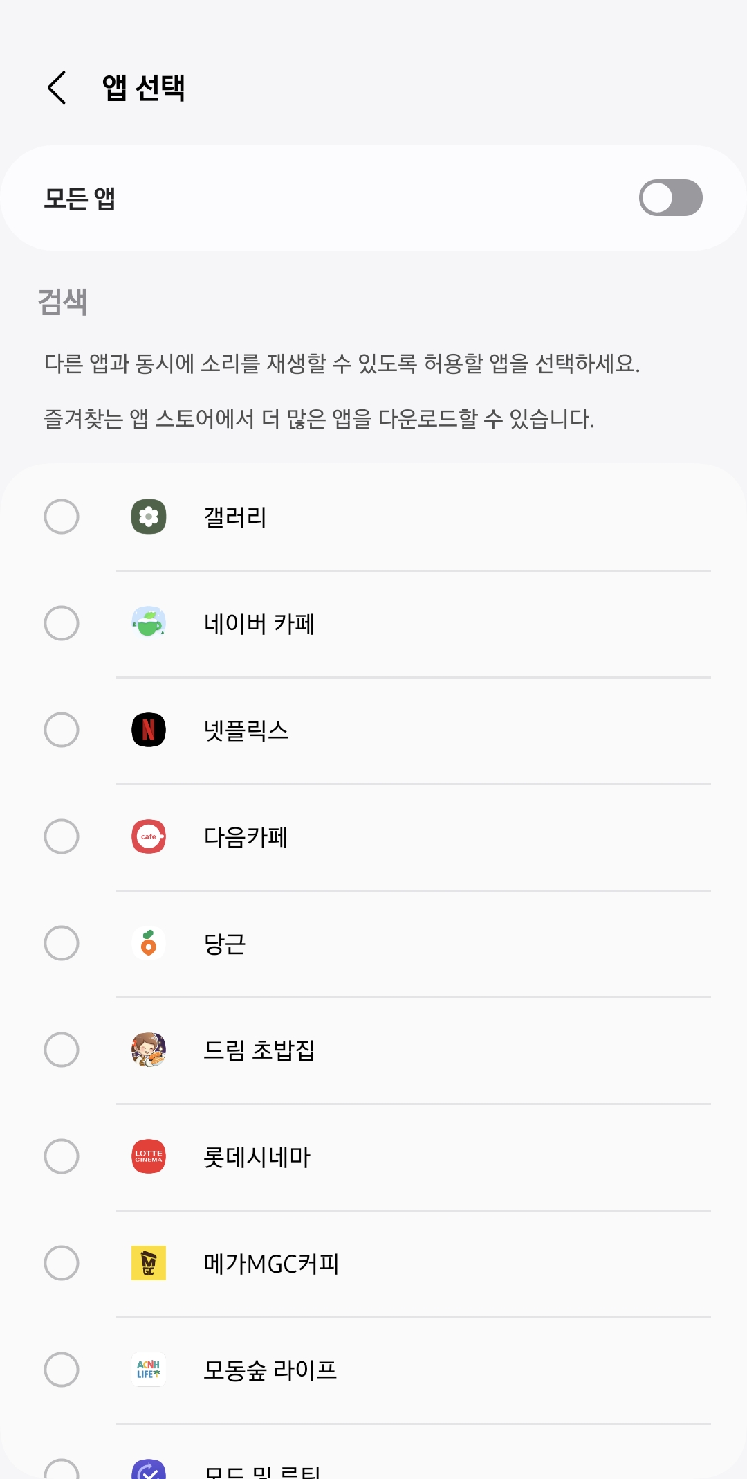 듀얼 앱 설정 - 따로 소리 설정 해놓은 앱과 같이 뜸