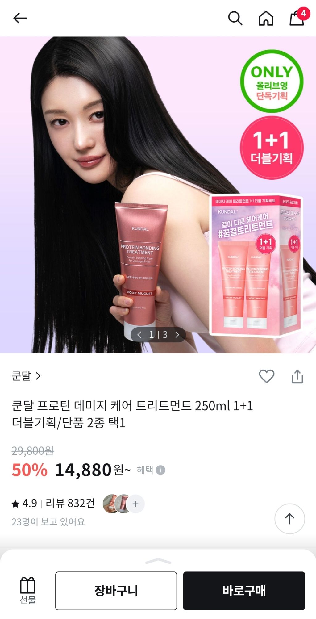 쿤달 프로틴 데미지 케어 트리트먼트 250ml 1+1 더블기획/단품 2종 택1