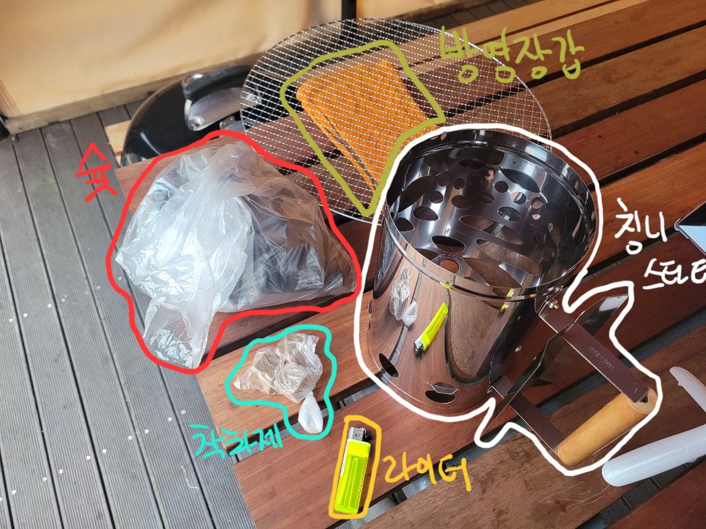 숯도 그냥 캠핑이나 팬션에서 파는 거 써도 될 것 같고요