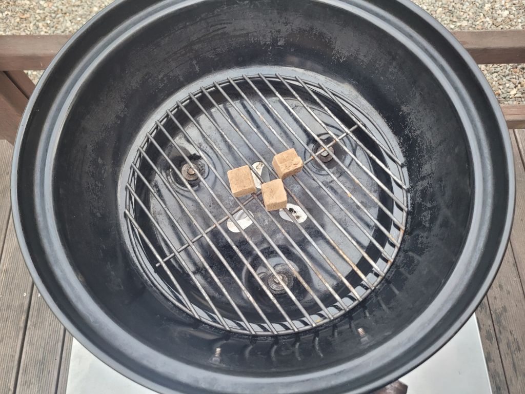고기 구울 그릴은 빼고 숯을 둘 그릴에 착화제 3개를 준비합니다