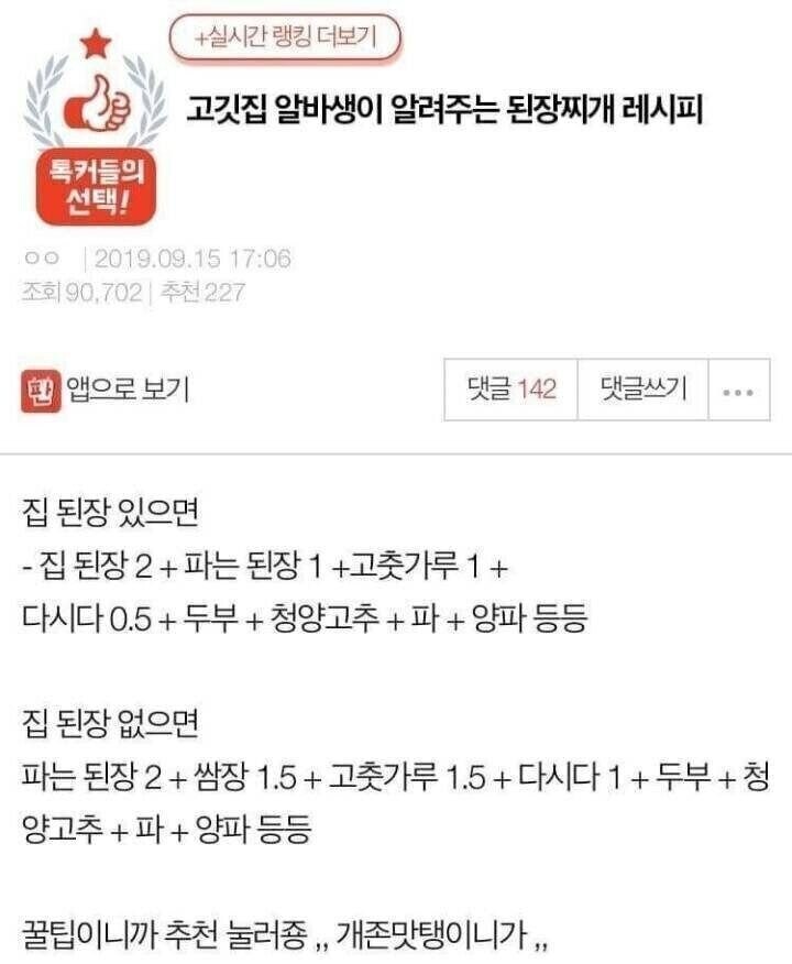 고깃집 알바생이 알려주는 된장찌개 레시피 pic.twitter.com/40kQOgwkwO
