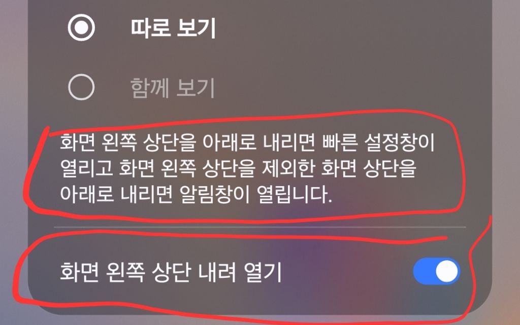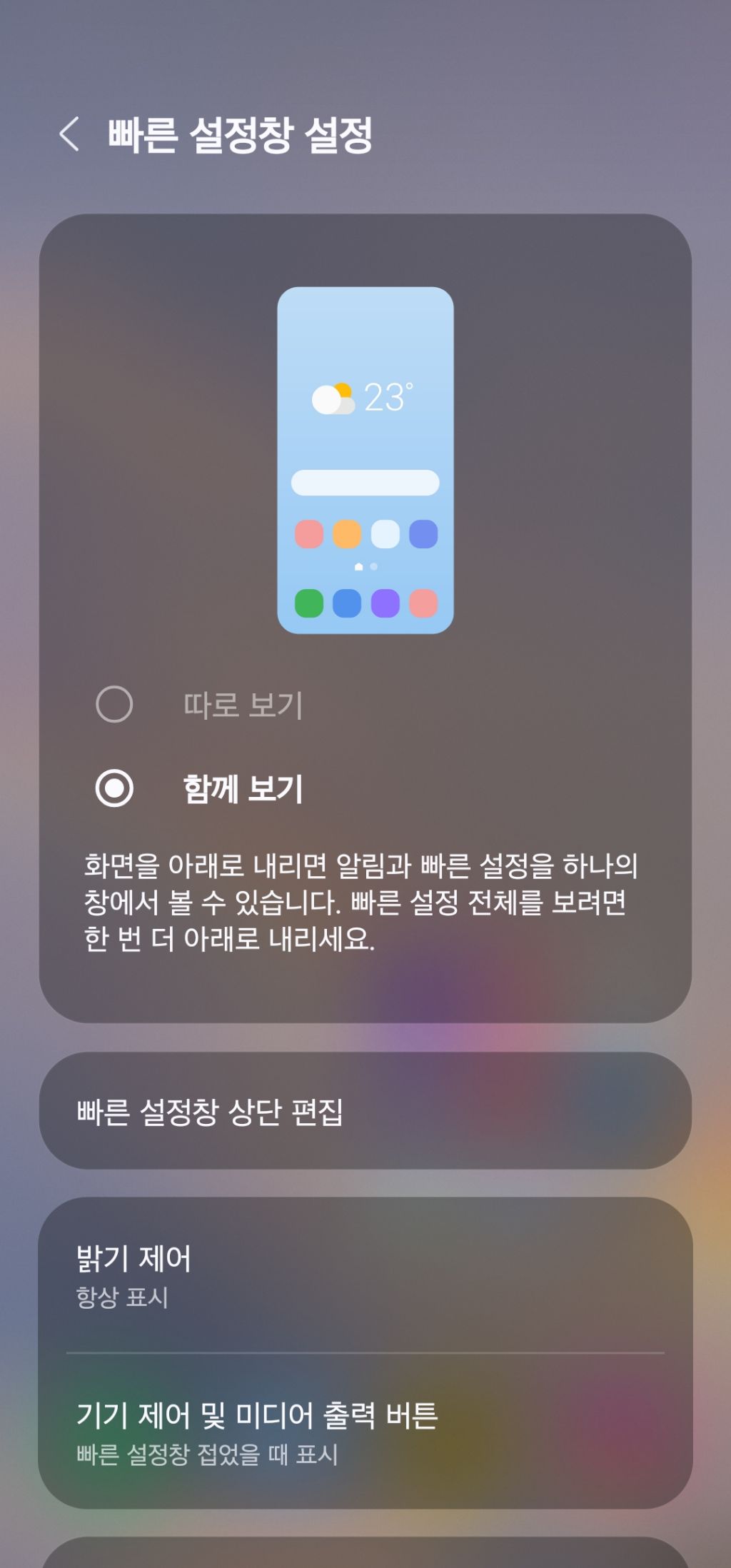one ui 7.0 업뎃 후 다 좋은데 상단바 왼쪽으로 내리면 어플 알림, 오른쪽으로 내리면 설정창 ( 진동, 와이파이, 블루투스, 밝기, 데이터 등) 나오는데 너무 불편해...~
