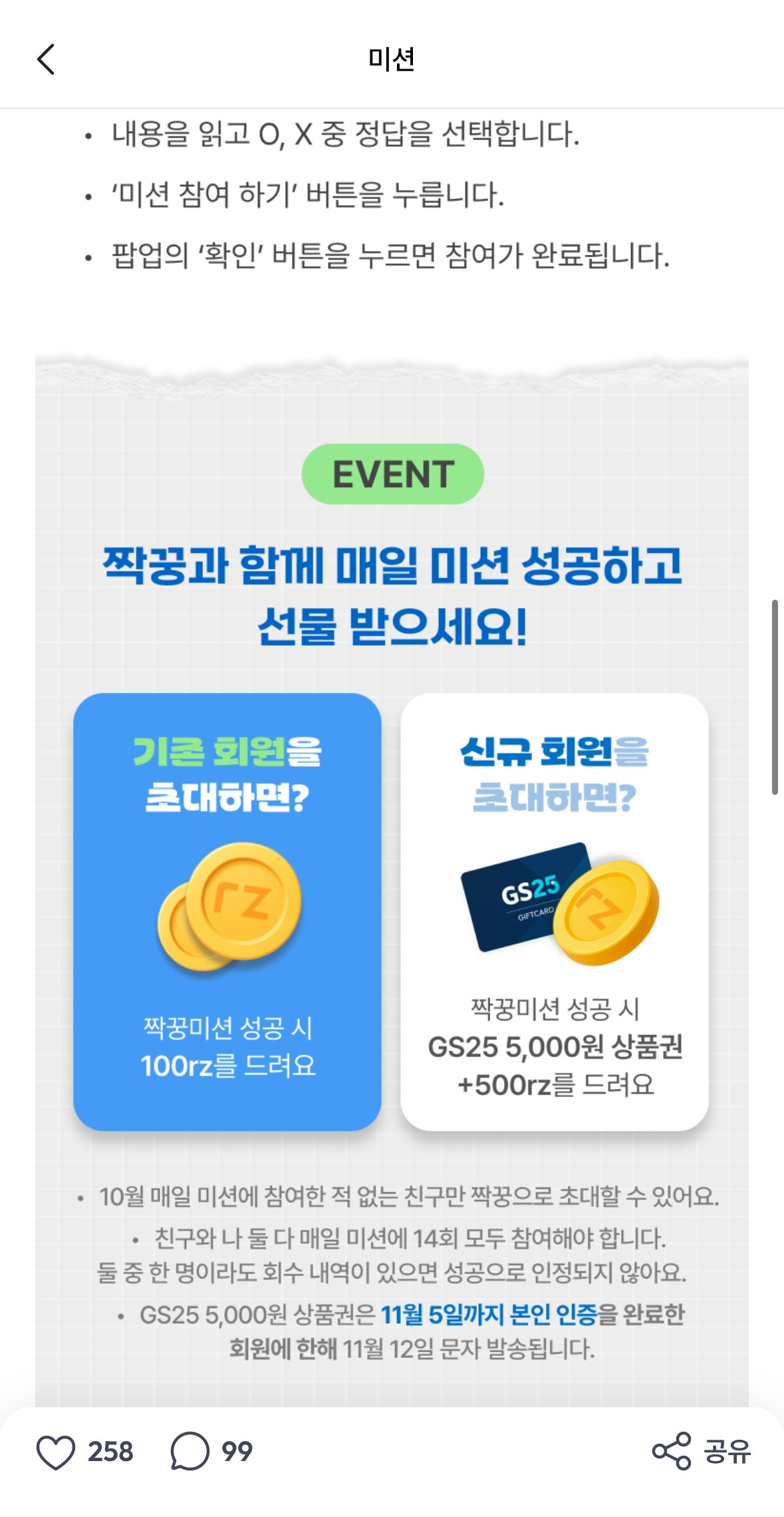 OX퀴즈 14회 풀면 둘다 GS25 깁티 5,000원 받아