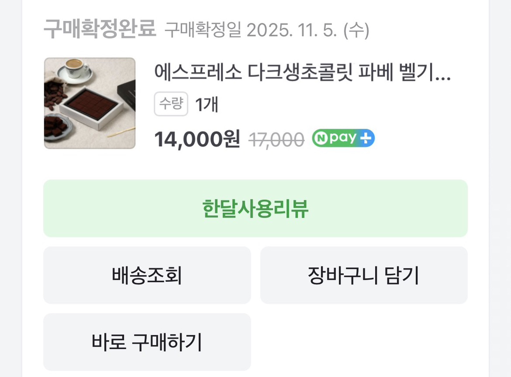 근데 3개에 28000원이라 배송비 합하면 그때 2개가격보다 싸 ㅠ 일단 팜유 없는 거 좋았고 생초코 맛 진함 (커피향도 꽤 많이 나)