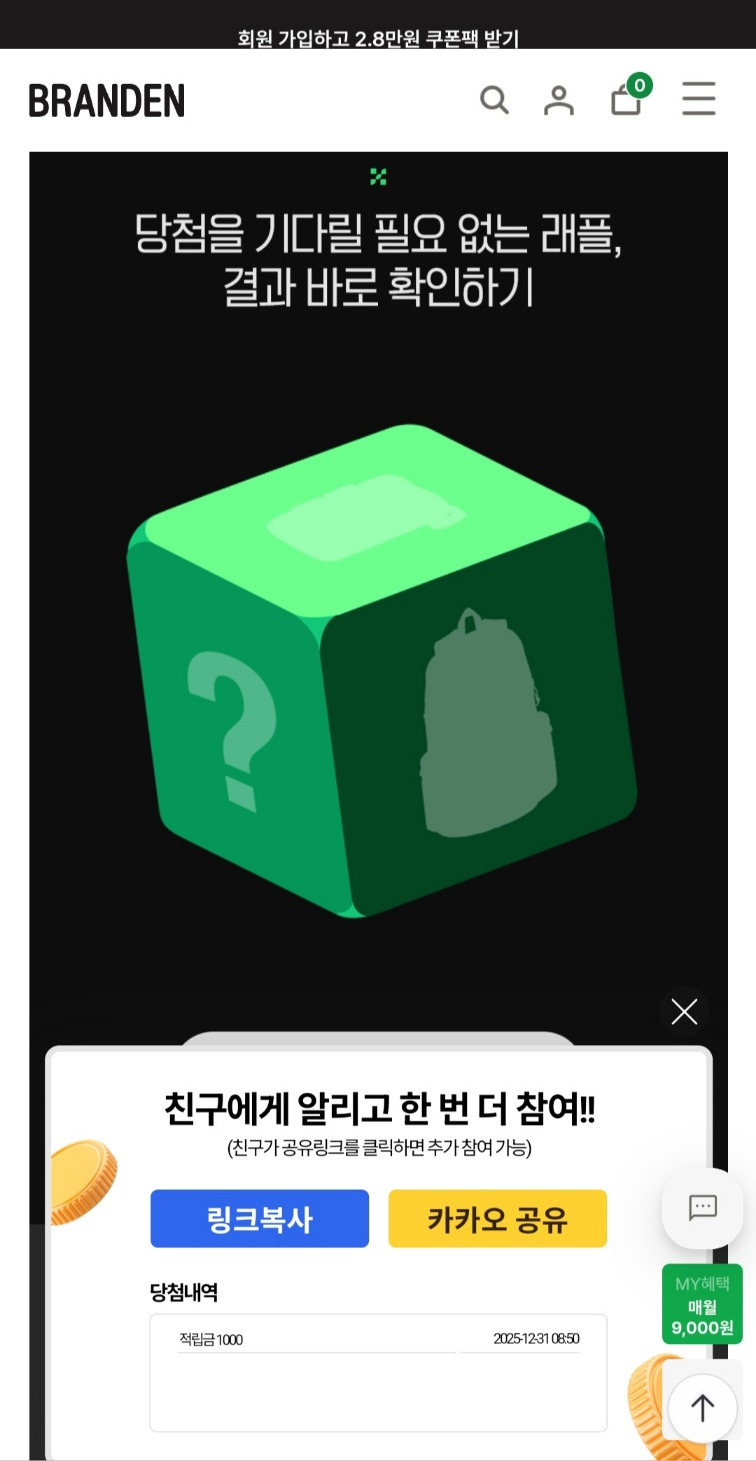 추첨이긴 한데 100원 구매 쿠폰 받을 수 있음