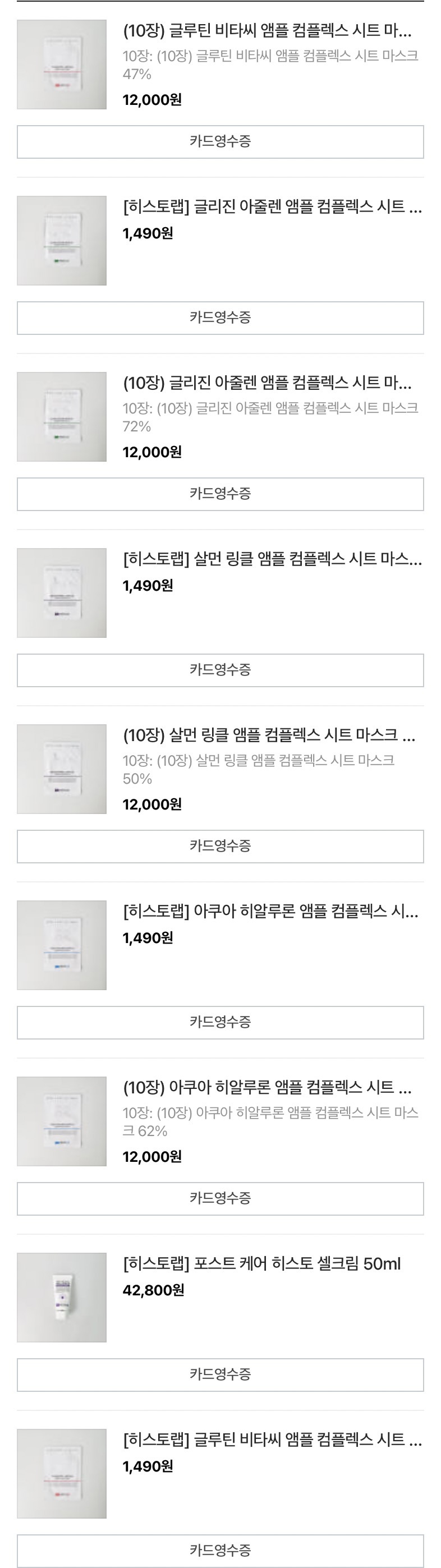영수증만 봐도 알겠지만 피부 진정에 이만한거 없다........히스토랩 팩 쓰기시작하면서부터 올리브영에서 팩 안사잖아 나.