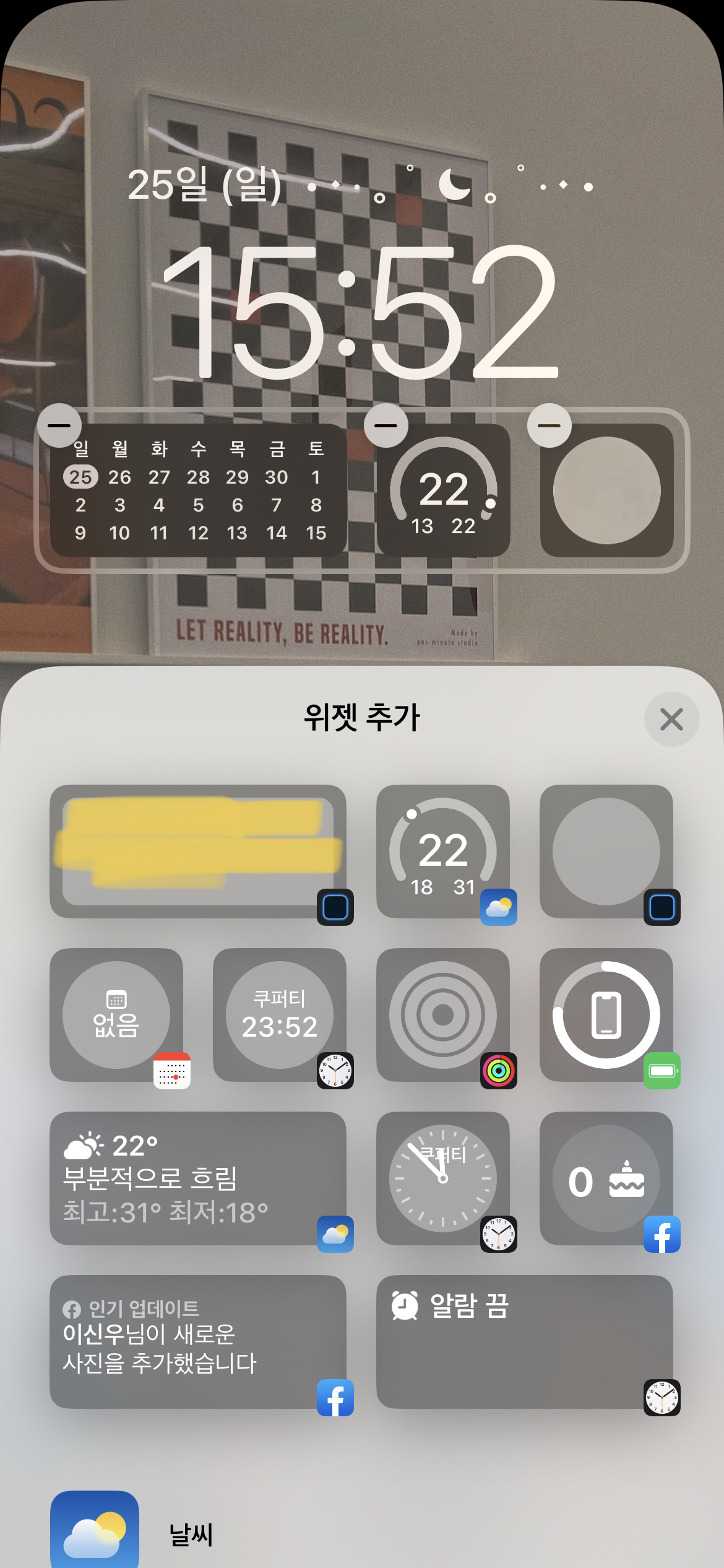 배경화면에 보이는 건 모두 기본 어플 + widgetsmith로 한 거임