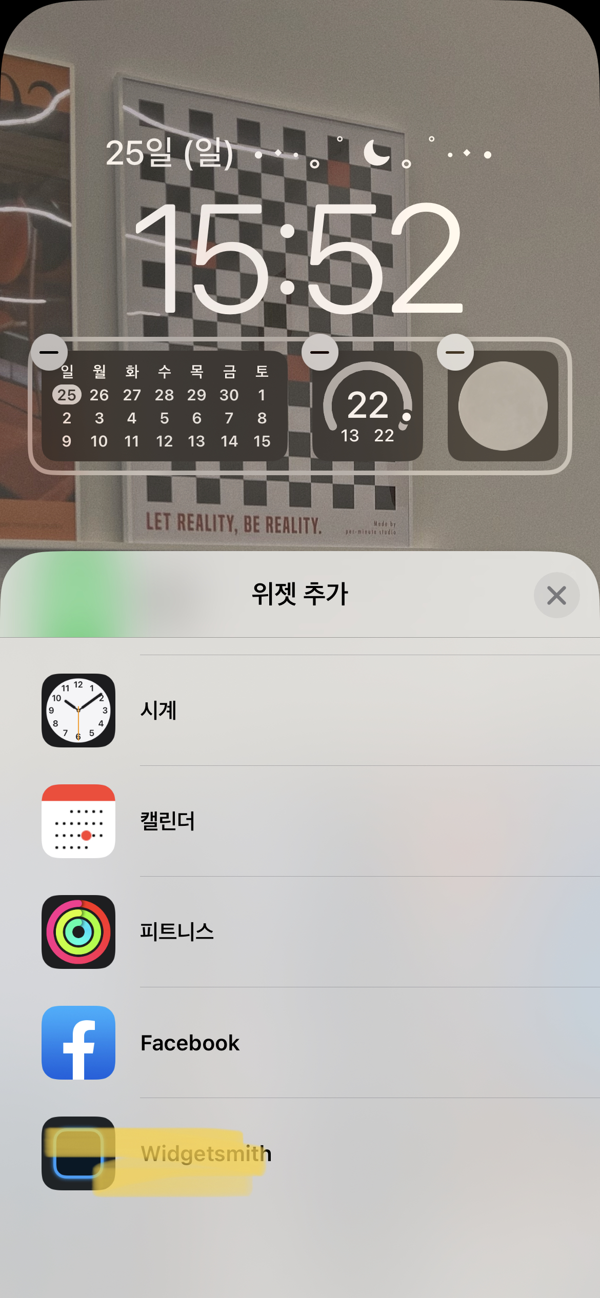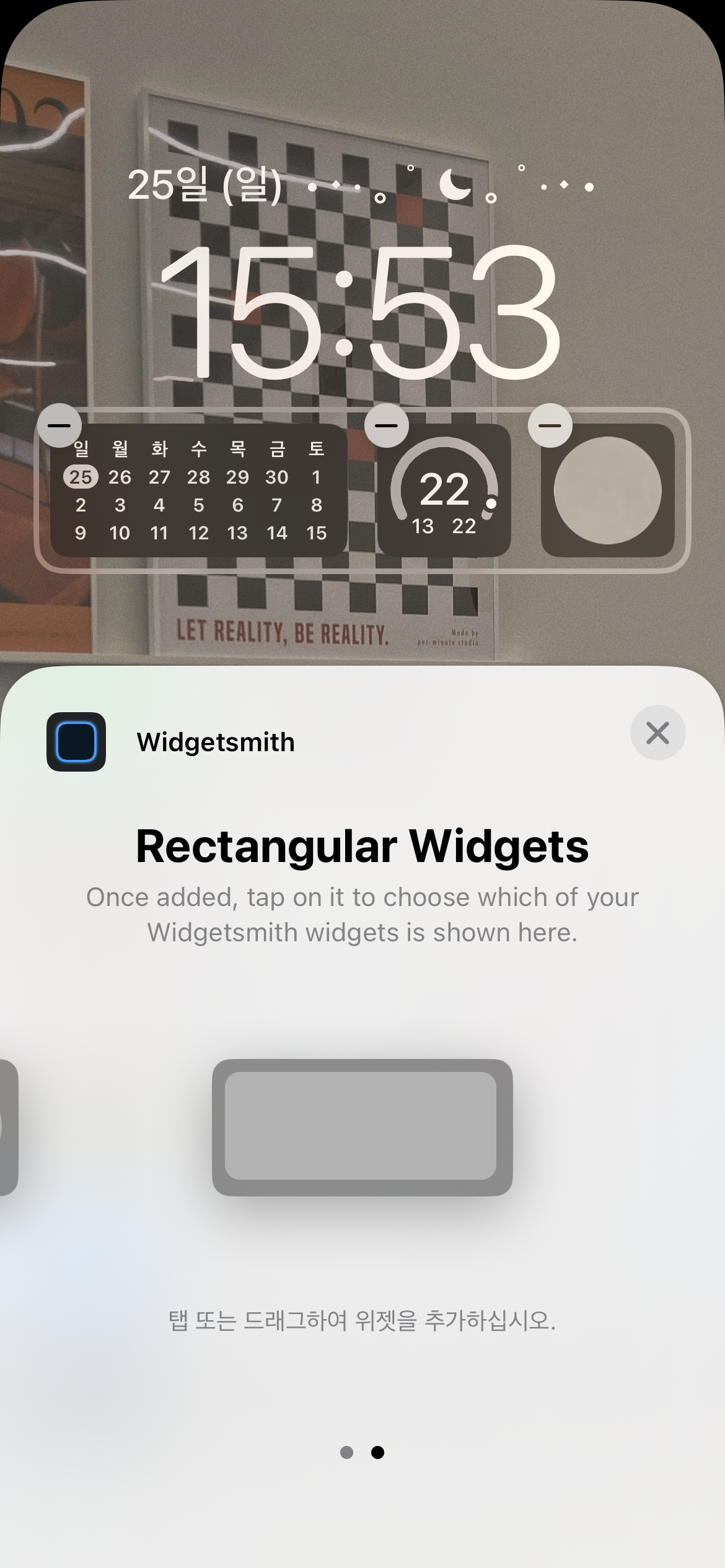 그러니 필요한 어플은 앱스토어에 있는 무료 어플 widgetsmith가 전부야