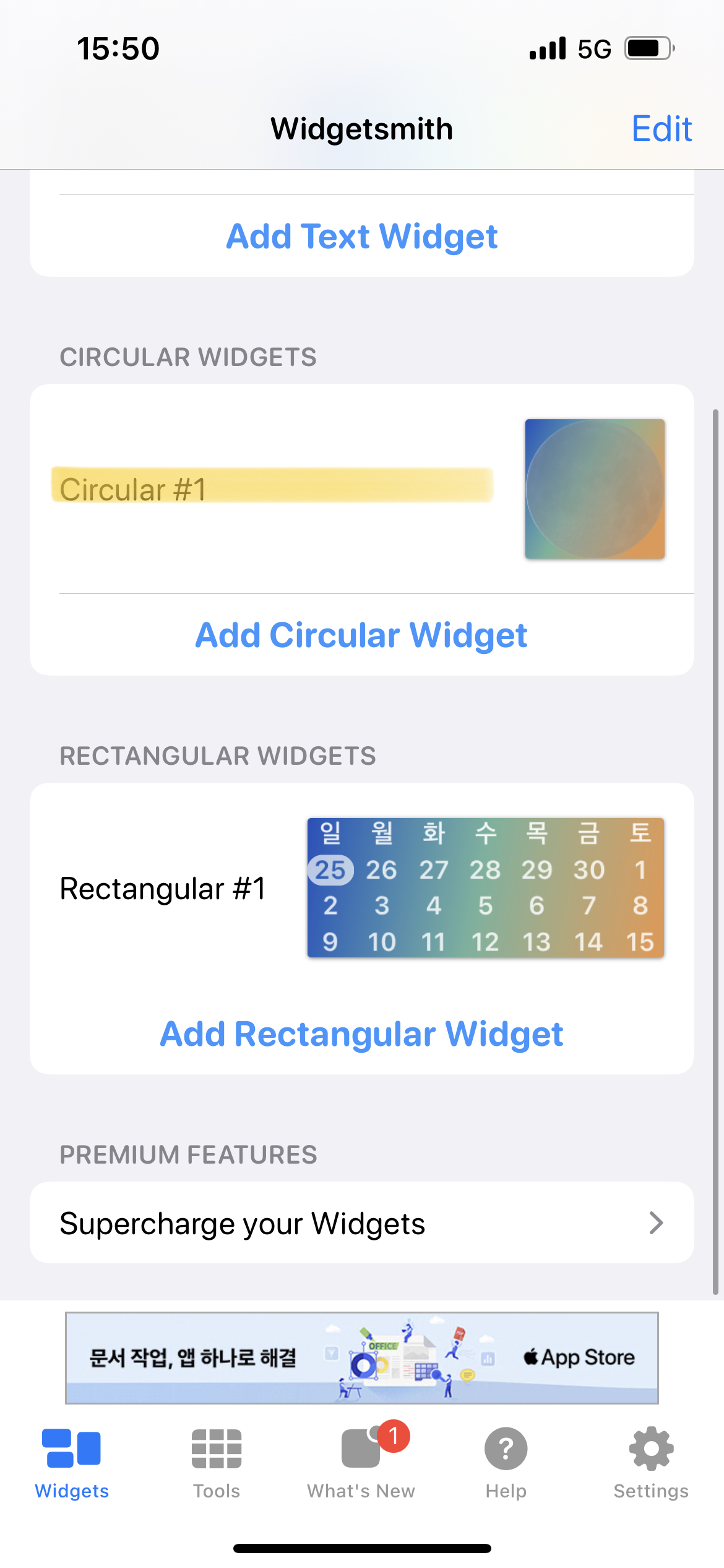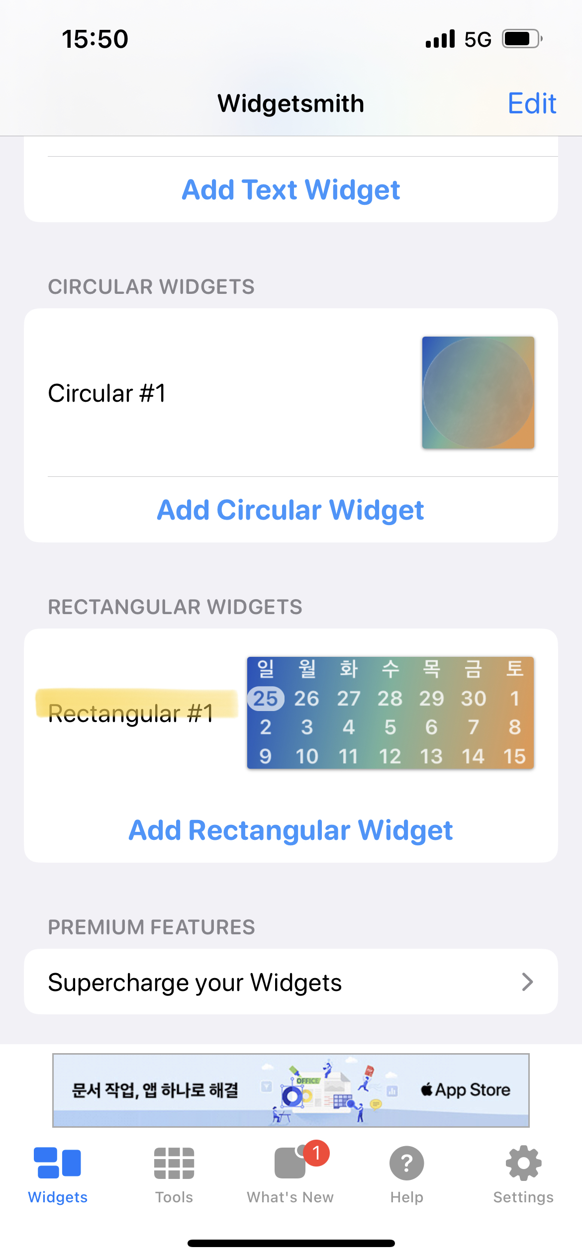 1. 스크롤 내리면 보이는 Widgetsmith 클릭